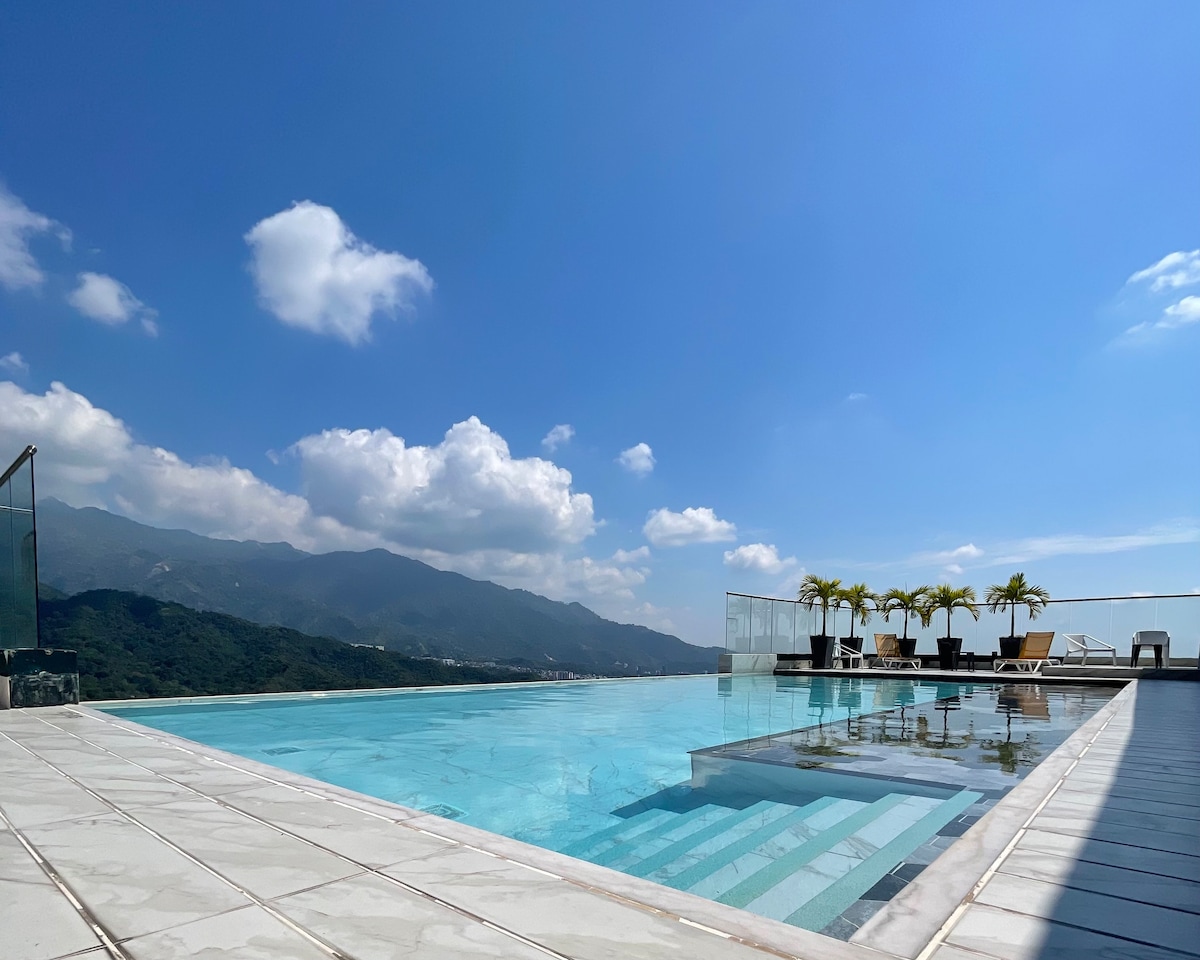 Este lugar único tiene su propio estilo, con elegantes acabados para ofrecerte una estadía confortable, para que te sientas como en casa, también ofrece una excepcional vista a la ciudad y montañas, la piscina tipo infinita tiene una espectacular vista desde el piso 19. La ubicación del alojamiento es muy central a 10 min de los centos comerciales y a 10 minutos del centro y lugares de interés. Sector y entorno seguro con restaurantes y supermercados a los alrededores.
