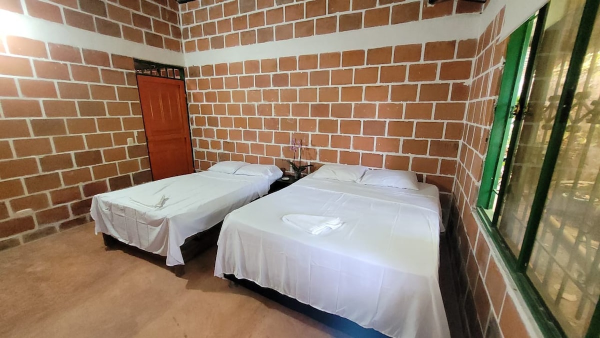 Relájate con toda tu familia en esta encantadora cabaña, una combinación perfecta de madera y ladrillo, ubicada en el corazón de la naturaleza. Rodeada de majestuosos árboles y con el suave canto de los pájaros de fondo, aquí encontrarás un refugio de paz. A solo unos metros, el río fluye tranquilamente, ofreciendo el sonido perfecto para desconectar. Ven y disfruta de un ambiente sereno, ideal para descansar y reconectarte. ¡Te esperamos en este paraíso natural! Máximo 5 personas cómodamente.