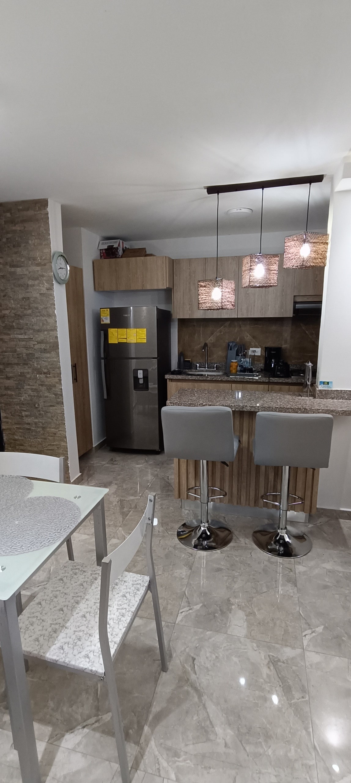 Apartamento cómodo ubicado en la milla de oro de Ibagué, zona exclusiva a solo 100 mts de los mejores centros comerciales de la ciudad, en barrio tranquilo y con un parque enfrente. Es un alojamiento pet friendly, cuenta con ducha de agua caliente, cocina integral equipada con todos los utensilios y electrodomésticos, servicio de Wi-Fi, habitaciones muy cómodas que cuentan con closet, disponibilidad de sofá cama y servicio de televisión con plataforma de magics. Es un alojamiento ideal