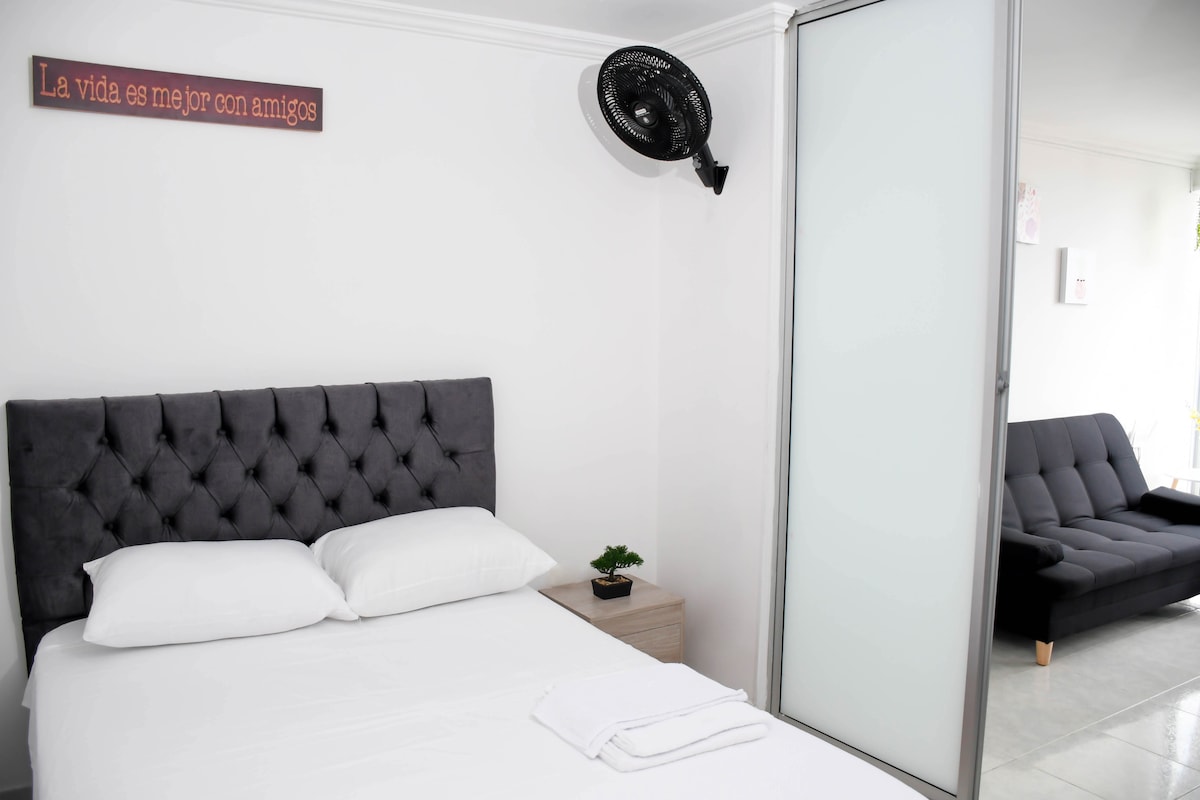 Beautiful studio apartment located in one of the best neighborhoods. Enjoy during your stay a cozy space and family atmosphere. Find nearby shopping centers, restaurants, green areas and access to public transport. The complex has a swimming pool, Jacuzzi, BBQ so you can share with your family and friends and enjoy Ibague's weather and its sunny but very windy days. It has private covered parking (last basement, Park # 23).