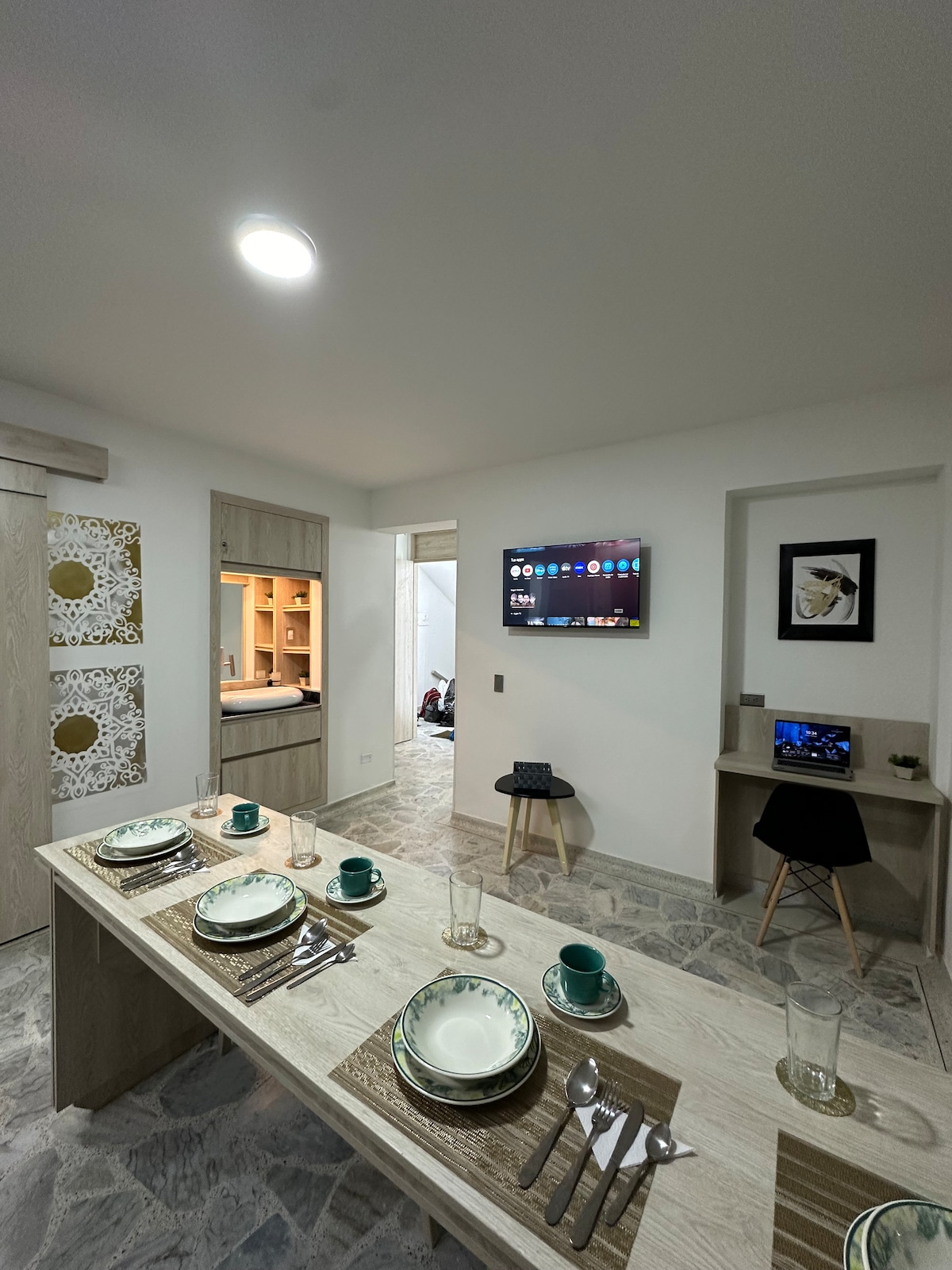 ✨Disfruta de una experiencia con estilo en este alojamiento céntrico. Acogedor y moderno, ideal para parejas. Perfecto para celebrar fechas especiales como cumpleaños, aniversarios y más. 📍 Excelente ubicación: en la zona comercial más exclusiva, a 5 min de los principales centros comerciales, restaurantes y bares de la ciudad 🔔 Importante Para el ingreso al conjunto se requiere el uso de manillas de acceso. Estas tienen un costo adicional de $8.000 COP por persona.