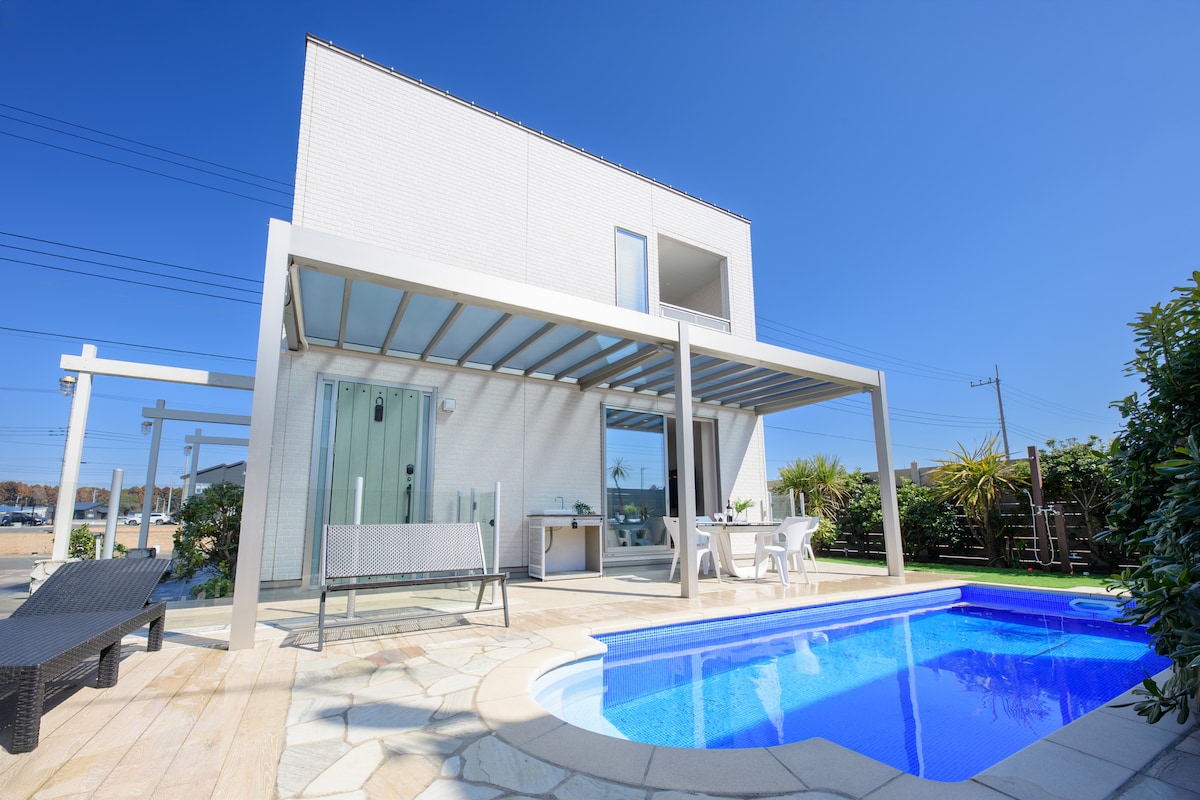 配备热泵的大型泳池别墅和桑拿!南国风私人空间|免费停车2台|推荐亲子入住