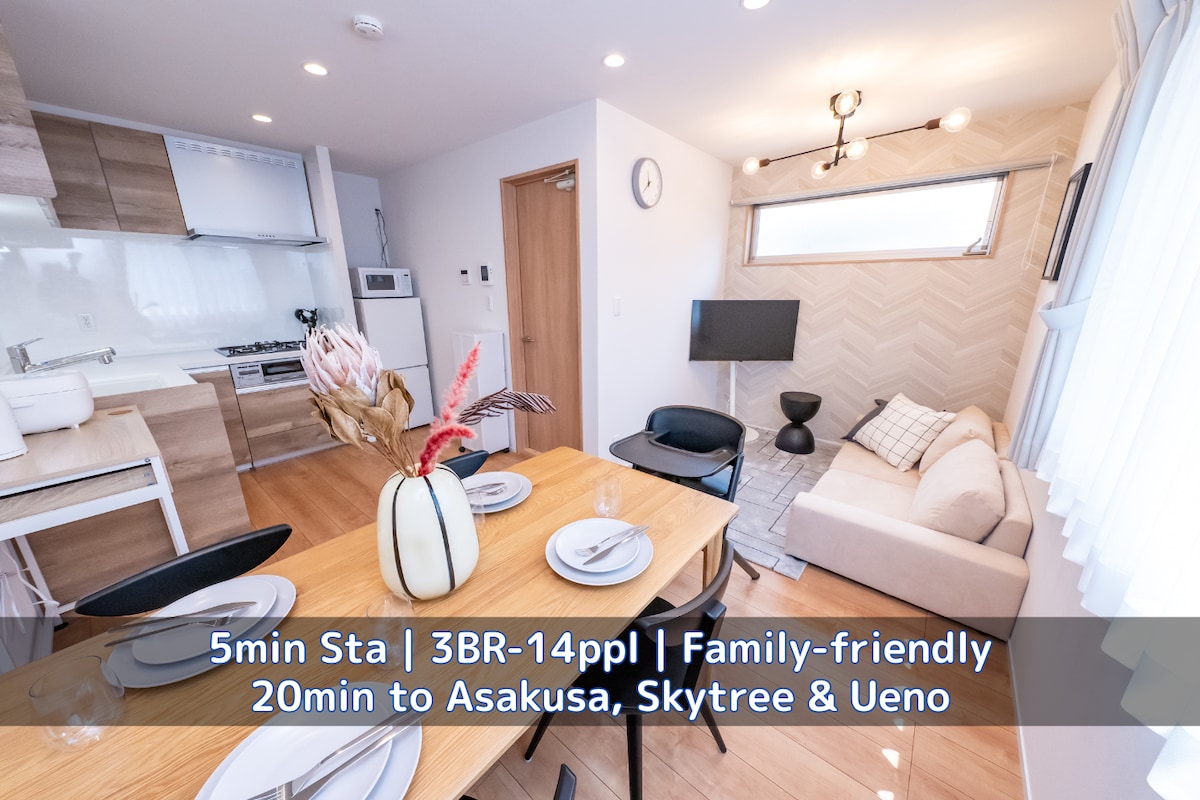 东京全新整栋14人|步行5分钟到站|亲子友好|浅草・晴空塔・上野20分钟
