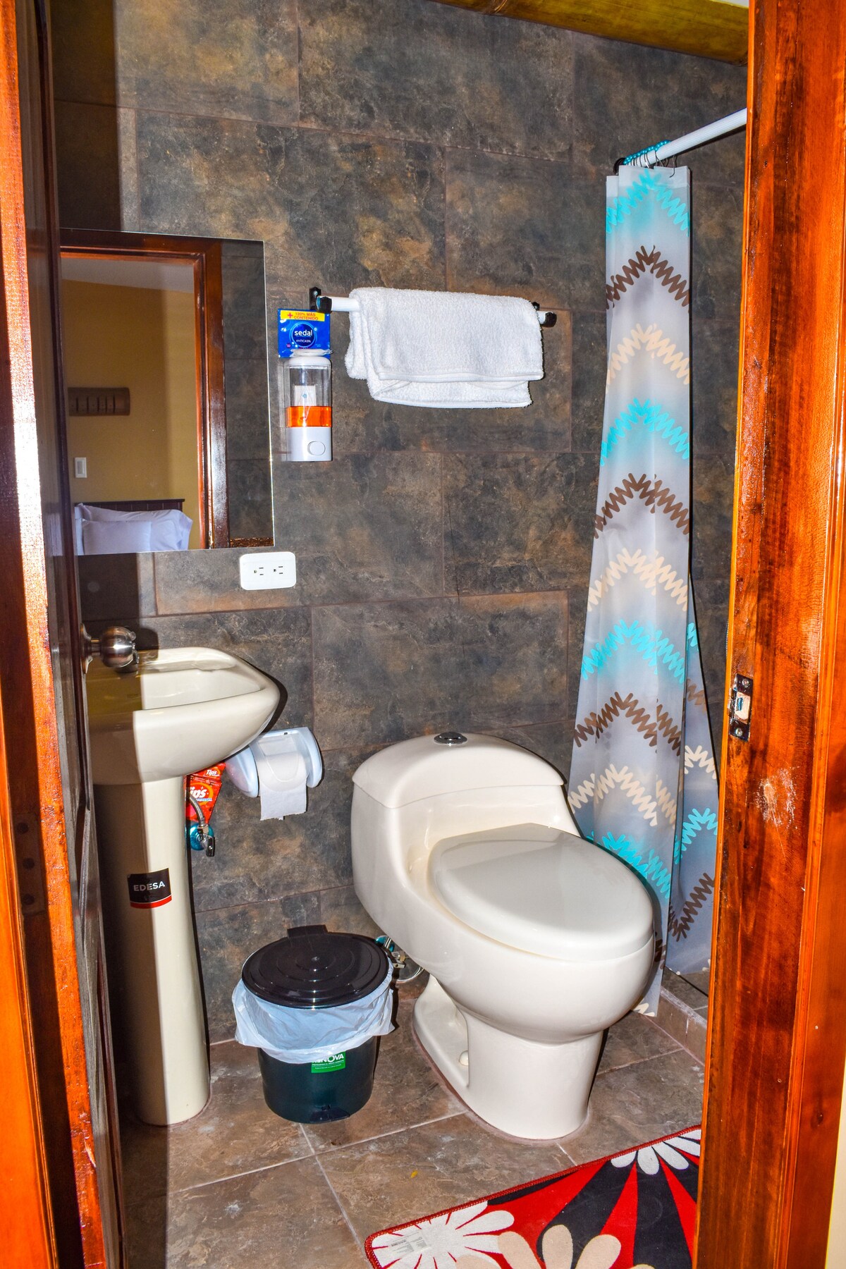 Casa Rose Cottage is a separate chalet at three star hotel Hosteria Rose Cottage. Sometimes known as our honeymoon suite, it has a four poster double bed downstairs, and a single bed upstairs. It has fireplace and a shower and bathroom. Guests staying can use the facilities of the hotel including restaurant,large library, tennis court, children's playground. The hotel also has a jacuzzi, which is free to use for guests staying at least 2 nights, otherwise costs $15 (pre-booking req'd).