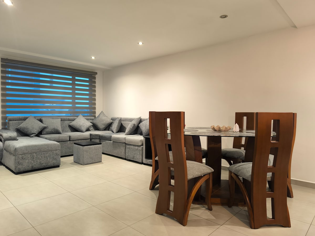 You won't find a home like ours in Ibarra! This is a beautiful house with a modern minimalist design in a quiet residential neighborhood, two blocks away from the main shopping center, financial institutions, and restaurants. It has three large bedrooms, each with a private bathroom and king or queen beds, TV room, fully equipped modern kitchen, garden, terraces, secure parking and WiFi.
