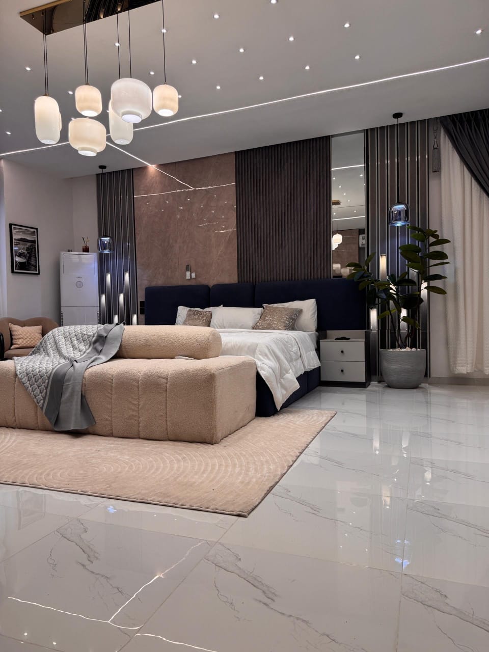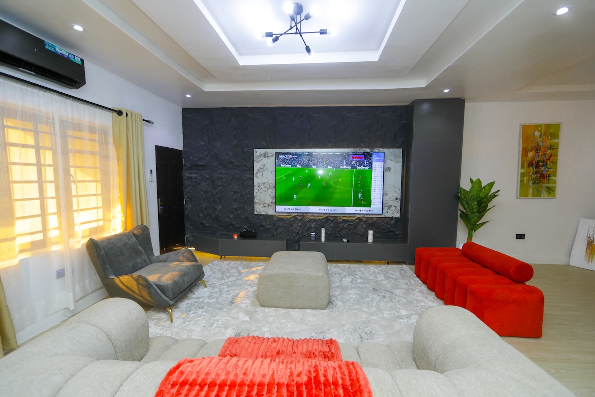This unique place has a style all its own. It’s a 1-bedroom and sitting room serviced apartment. Amenities include ; - 24/7 power supply - Smoke extractor -Microwave - CCTV camera - DSTV/Netflix -TV console -water heater - snooker board - table tennis - washing machine - Large parking space - Reading chairs and tables - Gas cooker -Freezer