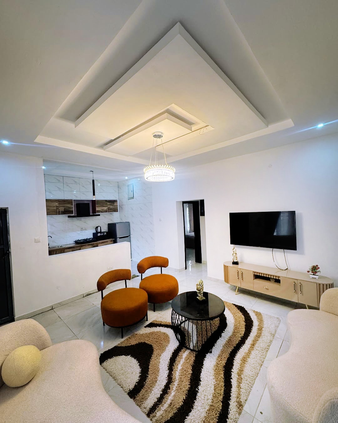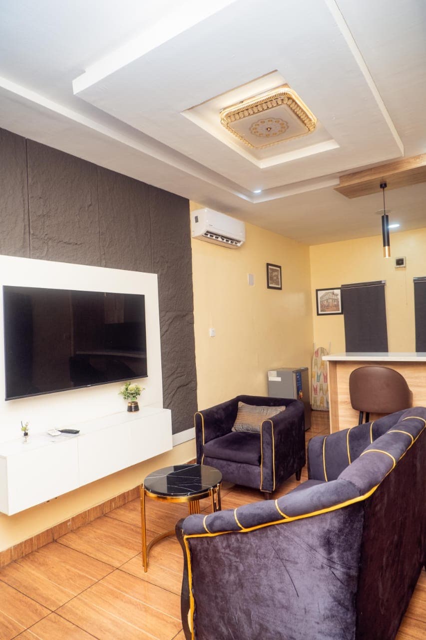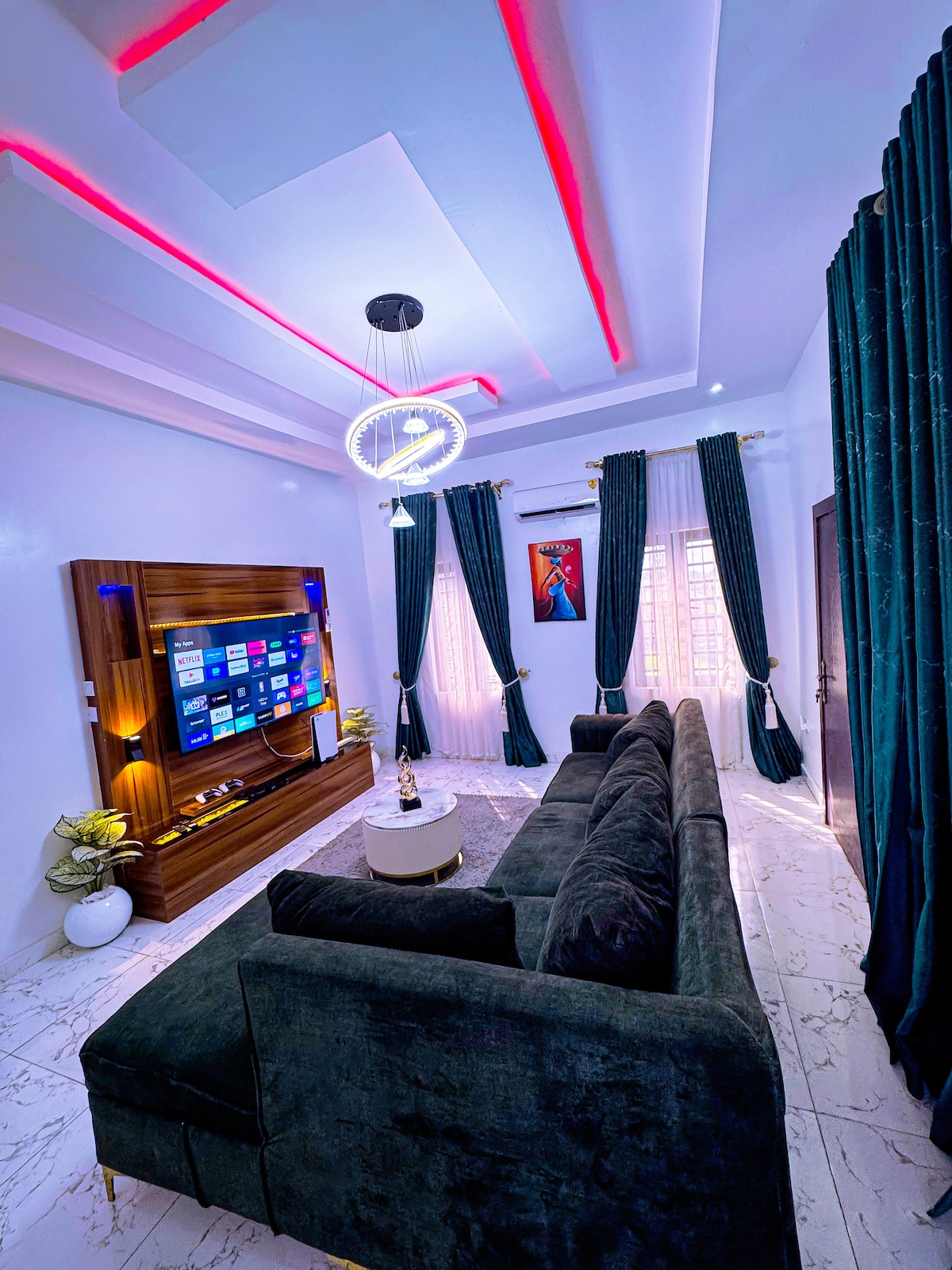 Welcome To TheChill – A Stylish 2 Bedroom Apartment. Enjoy Top Amenities Like; PS5 Netflix, Prime, Show-max, DSTV Fast Wi-Fi 24/7 power Security Clean water Washing machine Smart TVs Elevator Housekeeper. Perfect for relaxing or content creation, with a tastefully furnished space and great access roads. Book now 50k caution fee (Refundable).