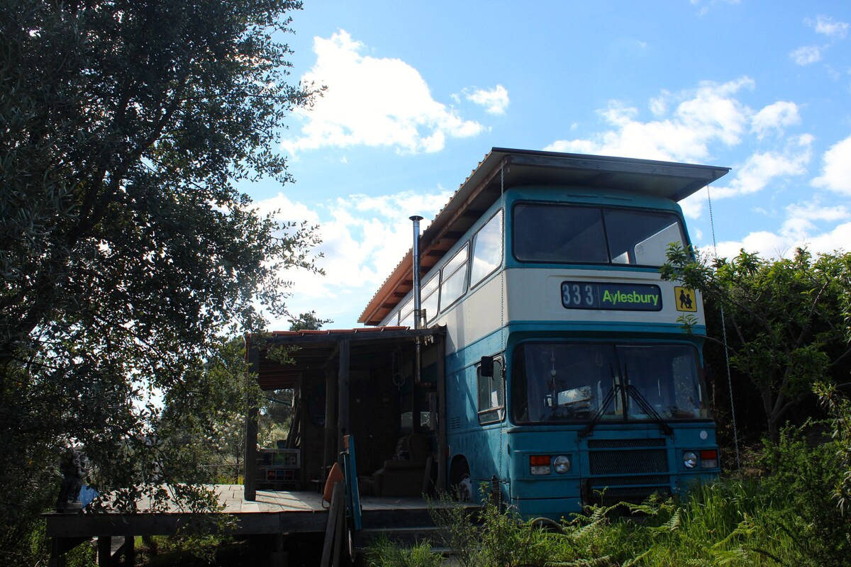 Converted double decker bus nestled in the mountains - with amazing views and privacy surrounded by nature. Unique, quirky off gird experience attached to an alternative project. Breathtaking sunrises to be observed from your bed :-) Features outdoor shower (solar, only hot when the sun shines), yoga deck and outdoor space, simple cooker, fridge and log burner. Perfect for a nature get away! IMPORTANT: off grid property with mountain roads - recommend slow driving when accessing the site