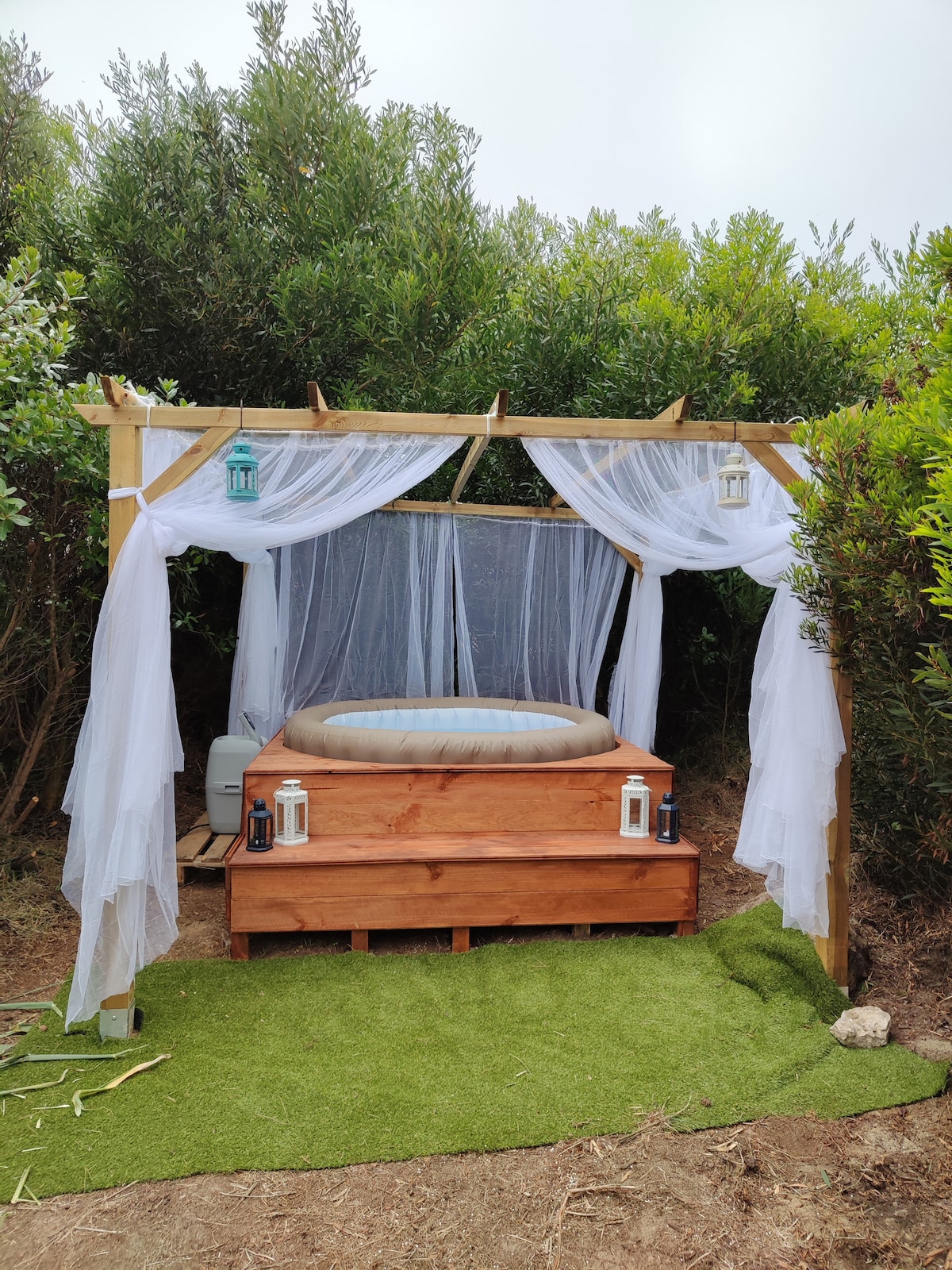 Our bus is heated witha poêle à granulé, the lovely bus is a refurbished leyland bus de collection 1960. Design with eco material and detail, there is a double bed in the second floor, 360 views of forest and open sky with glass to see the stars of Landes at night, same view from your bath on suit, on the first floor there is living area, dining and kitchen, inside of our beautiful eco farm there is our shop, medicinal garden and veggies plantation. You can organice massage and yoga treatments.