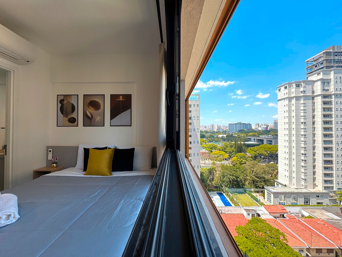 Welcome and make yourselves at home. The apartment is brand new, designed especially for you and has impeccable decor, very practical for everyday life. The view is spectacular! The apartment is on the 28th floor. We are in an excellent location in São Paulo, in the Pinheiros neighborhood, with restaurants, supermarkets and bakeries very close by. It's 40m2 (430 sqft) with 1 bedroom and 1 bathroom. Walking distance from Fradique Coutinho subway station (just 2 blocks).