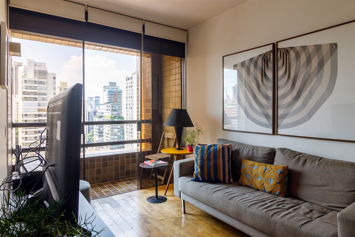 Extremely well located with maid service and cleaning every day. Excellent pool, gym and sauna on the rooftop. Valet parking. Surrounded by the most popular and award-winning restaurants and bars in São Paulo. Bright and ventilated apartment. Living room with sofa bed queen size for watching television and dining table for 4 people. Room with queen size bed and desk. Kitchen with all utensils. Parking space.