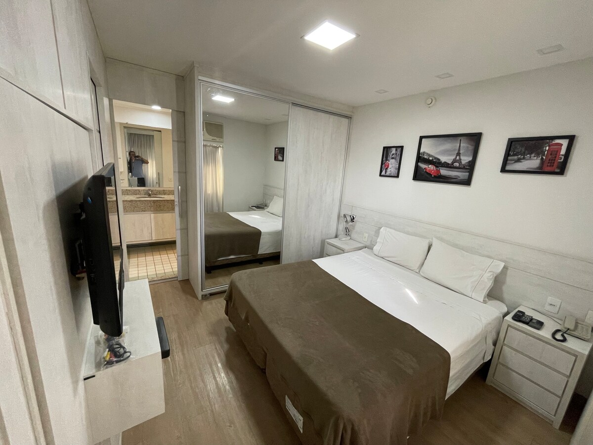Flat de 1 quarto e ante sala, confortável com ótima localização com duas camas: opção de duas camas de solteiro que juntas se torna uma cama King. O sofá cama é para reserva com 3º hóspede. Limpeza diária, recepção 24 horas, estacionamento gratuito, academia, sauna, piscina. Restaurante no prédio (custo extra). Local super seguro/rua tranquila. Próximo ao Parque Ibirapuera (700m), Ginásio Ibirapuera (150m), Av. Paulista/metrô ( 1 km) supermercado, farmácia, restaurantes, clínicas.