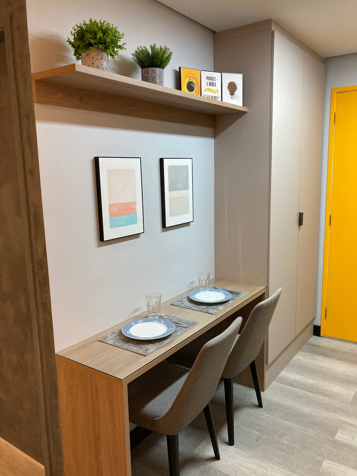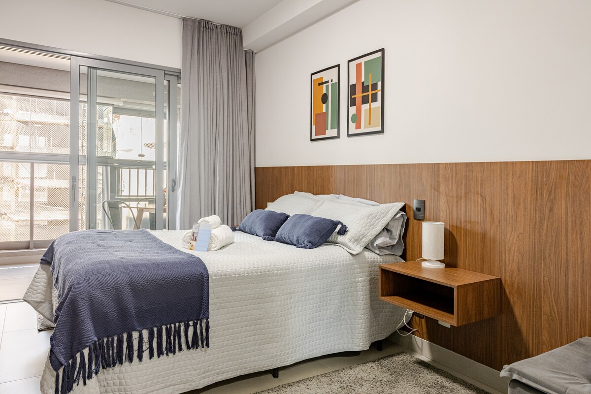 O Studio fica na Al. Lorena, nos Jardins, o bairro mais charmoso de São Paulo, repleto de ótimos restaurantes, bares e cafés. Com 30m2, conta com uma deliciosa cama king-size. A mini-cozinha, bem equipada, é ideal para preparar um bom café-da-manhã e refeições rápidas. Aqui será seu porto seguro perfeito seja numa viagem a trabalho ou a passeio!