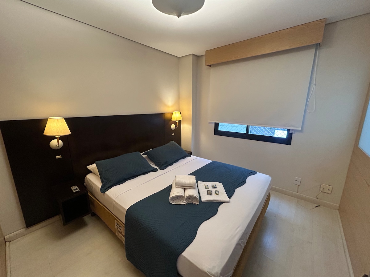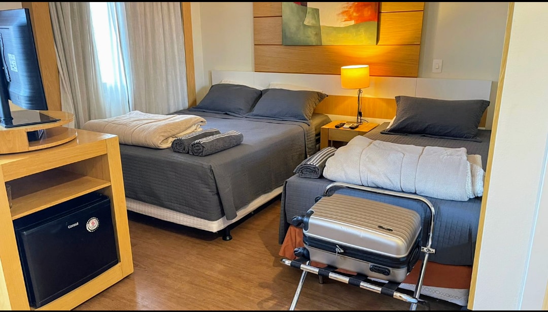 A paradisiacal stay in Ibirapuera, next to CGH Airport, Shopping Ibirapuera and São Paulo Expo. Our room was designed to provide a unique experience, ideal for business trips or leisure moments. Spacious bed, soft pillows, blackout curtains, Wi-Fi, TV and air conditioning. Bathroom with bath products, hairdryer and a relaxing shower. Minibar, electronic safe and room service at your disposal to make your stay even more pleasant.