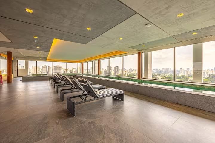 Pensado para transformar sua experiência de estadia em algo especial. Apto com quarto no mezanino, sala com pé direito duplo e vista espetacular, cama e chuveiro perfeitos, equipado com Alexa e iluminação automatizada. O Edifício recém construído, possui espaço Coworking amplo, Academia completa e Piscina no Rooftop ambas com vista para o Parque do Ibirapuera. Lavanderia administrada pela empresa Dry Clean, Quadra de Squash, Sauna Seca e bicicletário também estão disponíveis para os hóspedes.