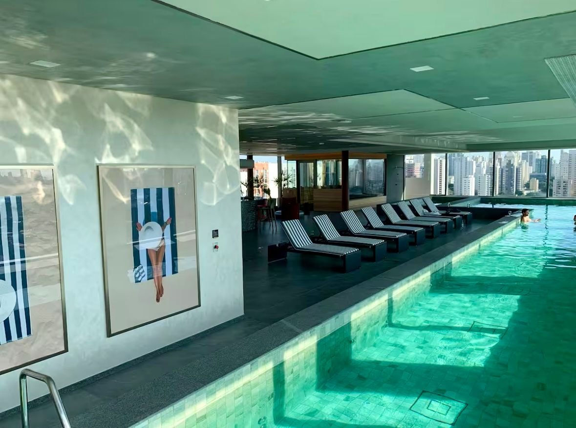 Experience One Eleven in Vila Olimpia. This modern apartment features large windows with breathtaking city views and natural light. The unit boasts 600 Mbps internet and a 4K HD TV. For total comfort, it has a Hot/Cold AC system: 27,000 BTU/h unit in the living room and 10,000 BTU/h in the bedroom. The bedroom is quiet and dark for a restful sleep. Impeccably maintained, you’ll be walking distance to top restaurants and business hubs—a safe, upscale retreat with a stunning urban backdrop.