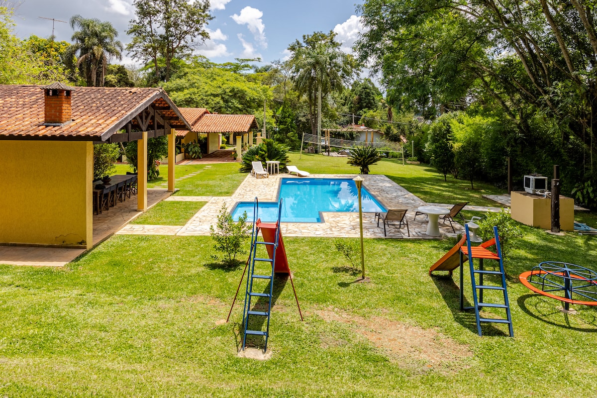 O Lugar ideal para você e sua família, Casa completa e bem equipada. Mais de 230 Avaliações Positivas!! Internet de 400 MB - Fibra Ótica.. Linda e confortável chácara cercado de verde e com várias atividades para a família como trilhas ecológicas, 3 lagos e exuberante mata de reserva. Segurança e Portaria 24 horas... Ótimo lugar para descansar, relaxar e curtir a natureza. Lareira... Piscina Privativa, Espaço Gourmet com churrasqueira, fogão a lenha, c. bonecas. Pets ok mas no máximo 2.