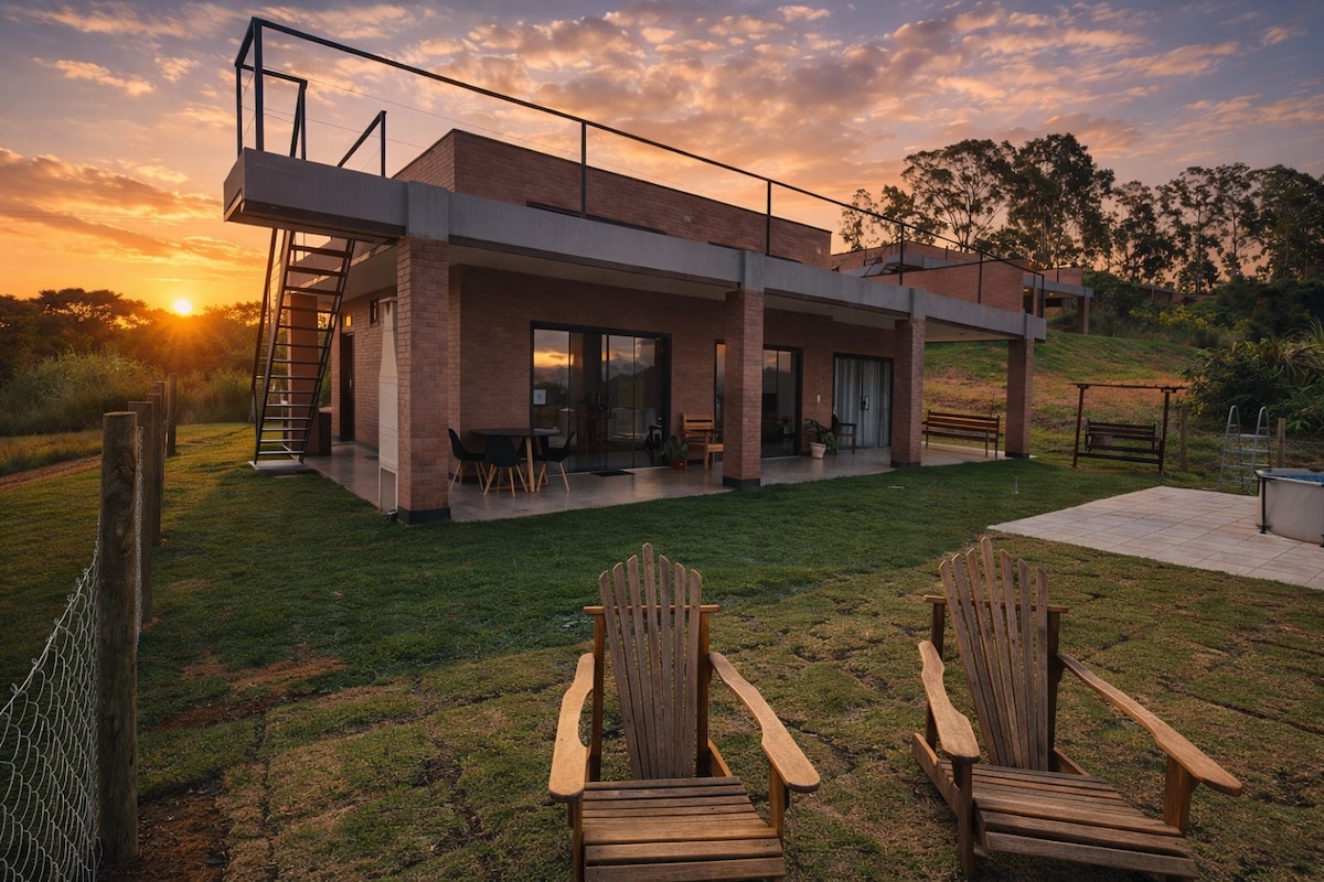 Sigam @elysian_experience Exclusiva estrutura de steel frame VISTA de tirar o fôlego! CASA COMPLETA c/ todos os utensílios domésticos, taças de cristal, caneca Stanley, JBL, smart TV, Colchão, roupa de cama e banho de 1a linha! PERSI JACUZZI enorme aquecida, c/ vista para represa e p/ pôr do sol. Banheiro transparente c/ vista e película de privacidade LAZER GARANTIDO Acesso a represa em nosso píer particular dentro de nossa propriedade LOJINHA DE CONVENIÊNCIA