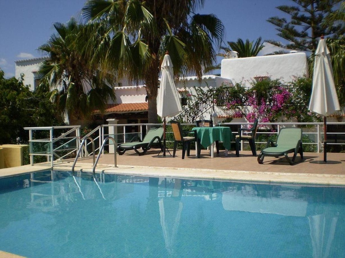 Marieta's House is a country house, situated 2 kms from Sant Antoni de Portmany and in a quiet neighborhood. It's a very bright and cheerful, with three bedrooms, one with single bed, one with double bed and one single bed convertible into a double bed, bathroom, living room, dining room and fully equipped kitchen. Best of the house is its splendid sun terrace and pool, and also has wi-fi and air conditioning. Car hire is recommended.