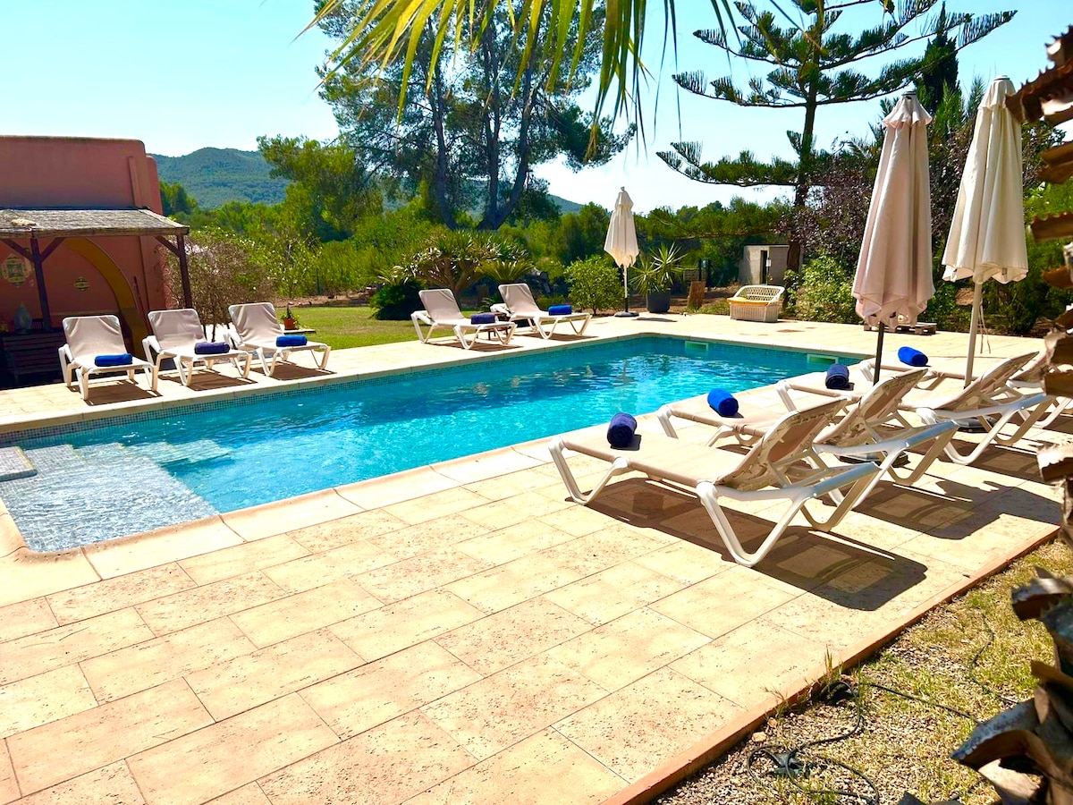 Perfecte vakantievilla in traditionele Ibiza-stijl! * 5 slaapkamers met 13 bedden * Aircondioning in alle slaapkamers * Groot natuurlijk verwarmd zwembad via Dekobo technologie (+5-7 graden extra) * Super snel Starlink WiFi (300 Mbps) * Killer view op platteland en zee * BBQ en eigen pizzaoven * Grote buitenruimte met terrassen, en eigen fruitbomen * TV met Netflix * 4 douches en 3 baden * Parkeerplek voor meerdere auto's * Ideaal voor gezinnen, groepen en zeer geschikt voor kinderen