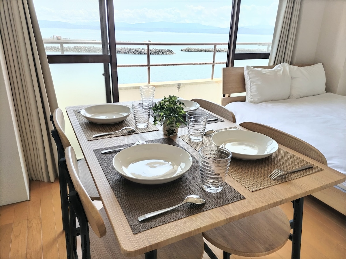 Ocean view! Beach (1 min) - private vibe. Enjoy Sakurajima, Kinko Bay, & Chiringashima views from the living room. Exclusive private house (1 group/day) for ultimate relaxation. Fall asleep to the sound of waves – we're right by the sea in Ibusuki! Pets welcome. Retro house, quiet. Car needed (5-6 parking/20 bikes). Garden BBQ. Free WiFi. Massage chair. Washer/dryer. Full electric kitchen, dishwasher, hot/cold water. 5 free bikes. Fishing: beach (sillago), rocks (rockfish), near octopus.