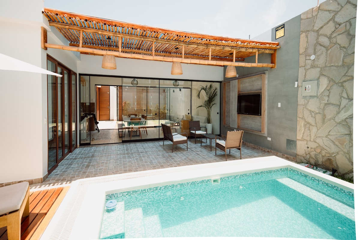Escápate al corazón del Oasis en esta casa con Piscina Temperada y privada! recién construida! estamos a solo 3 minutos de la magica Huacachina y sus dunas. Es perfecta para familias, parejas o amigos que vengan por aventura, descanso o para descubrir los encantos del desierto. Relájate en Nuestra Piscina Temperada! con ambientes cómodos y acogedores, pensados para que te sientas en casa, cocina equipada. reservas 3 noches o mas accederás automáticamente a un 10% de Descuento en tu estadía!