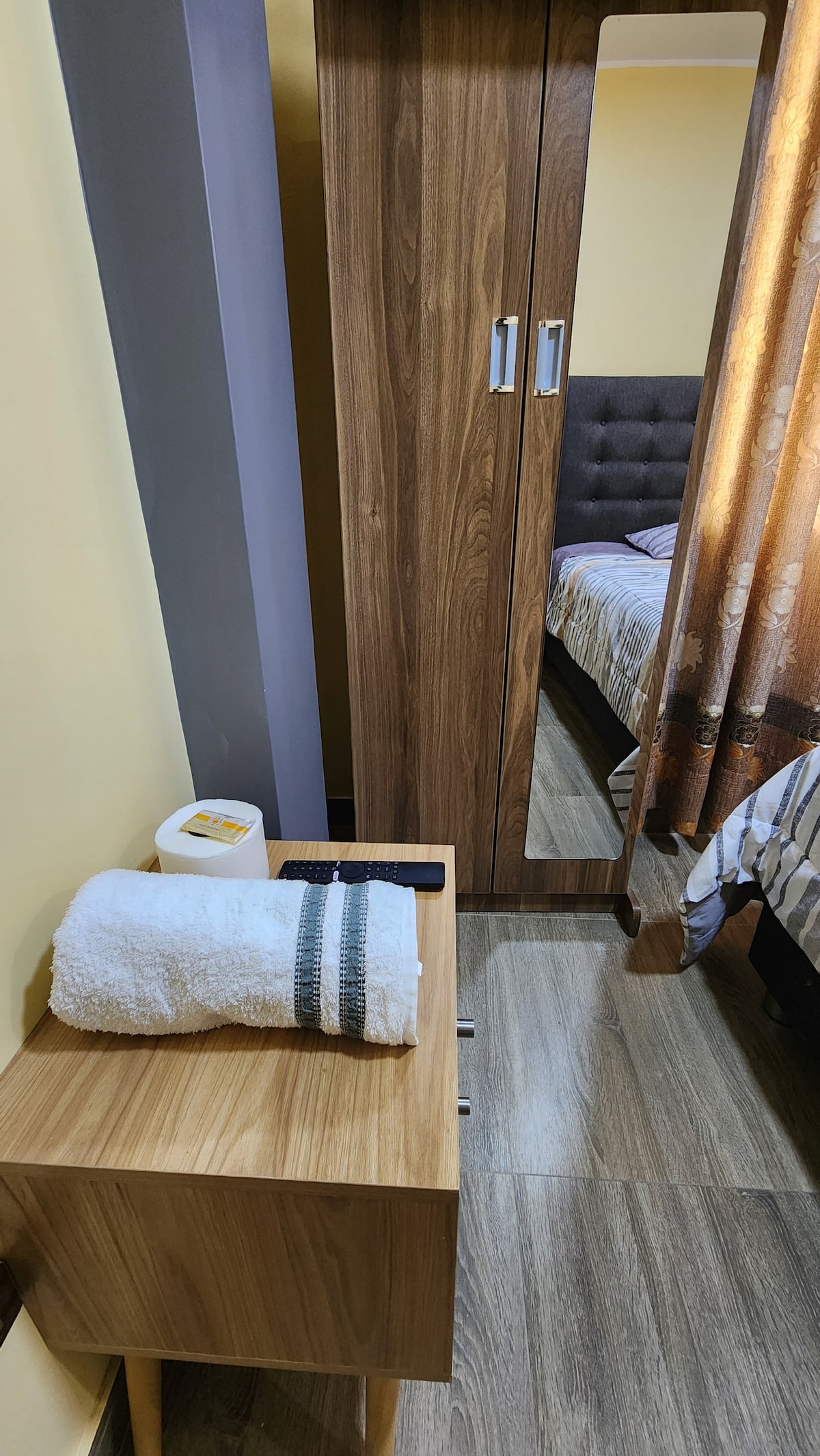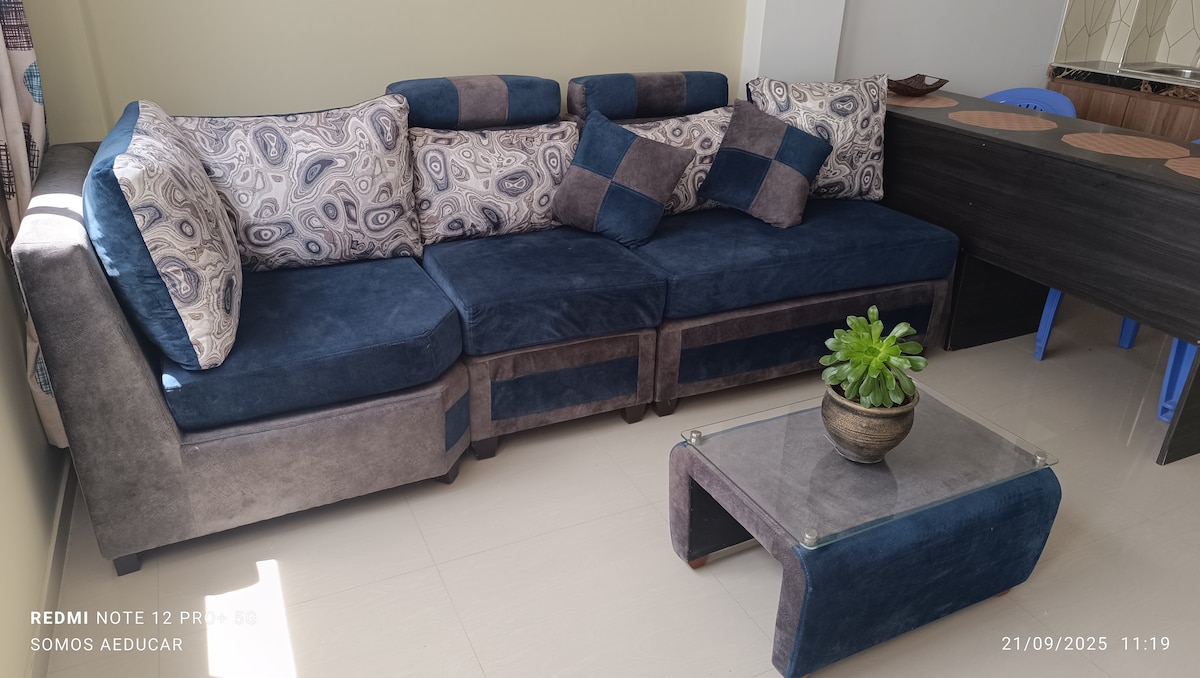 Departamento para 3 personas cerca de Huacachina, Ica, caminando te tomaras 15 minutos y en auto o tuk tuk 2 minutos, este apartamento es ideal para viajeros en grupos pequeños, esta ubicado en el tercer piso entrada independiente, cuanta con sala , pequeña cocina, y 01 baño, cuenta con lo necesario para que tu estadía como viajero sea agradable