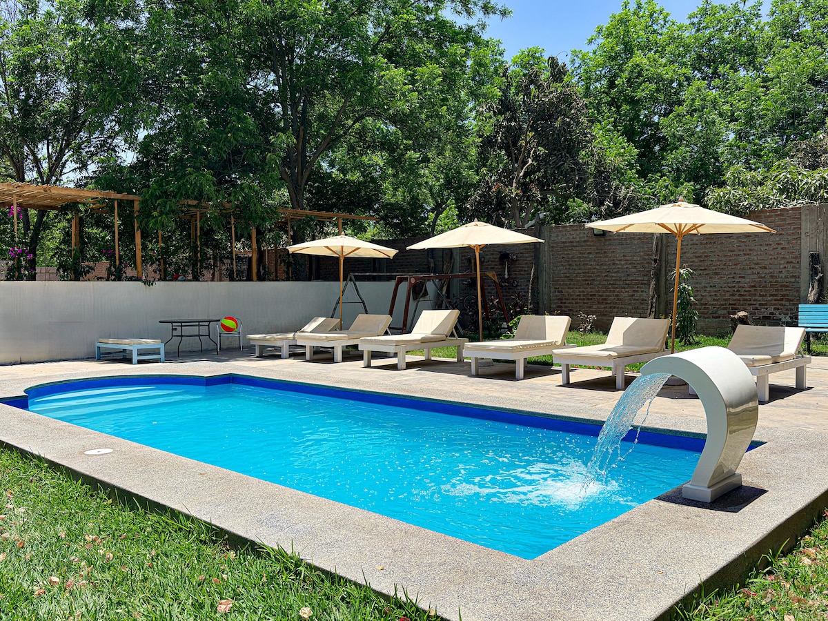 *POR FAVOR: LEA BIEN SOBRE NUESTROS SERVICIOS Y QUE ESTÁ INCLUIDO ANTES DE RESERVAR* ¡Relájate a sólo unos metros del oasis de la Huacachina! En nuestro establecimiento encontrará un ambiente tranquilo y muy familiar en donde podrás disfrutar de la piscina, o pasear en bicicleta rumbo a Huacachina.