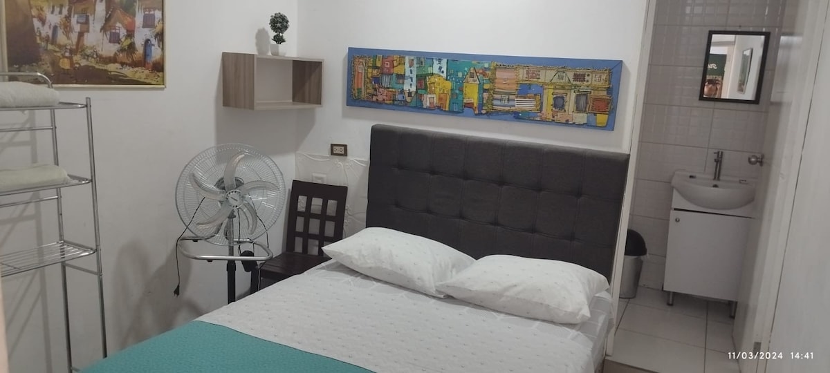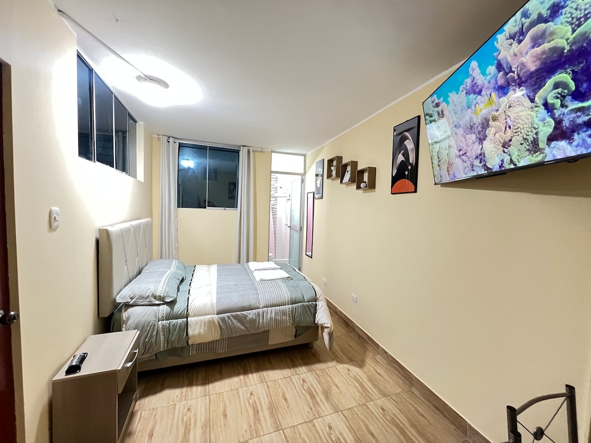 Habitación cómoda en 1er piso, baño propio, agua caliente, WiFi y acceso independiente. Estamos en una zona residencial segura, con fácil acceso al transporte público y privado, a 10 min de Huacachina y cerca de MegaPlaza, Plaza de Armas y museos. Contamos con restaurante de día y comida rápida por las noches. Además, en la azotea encontrarás nuestro restobar exclusivo con buena vista, tragos típicos y deliciosos piqueos. Ideal para parejas, familias o viajeros. No fumar, no mascotas.