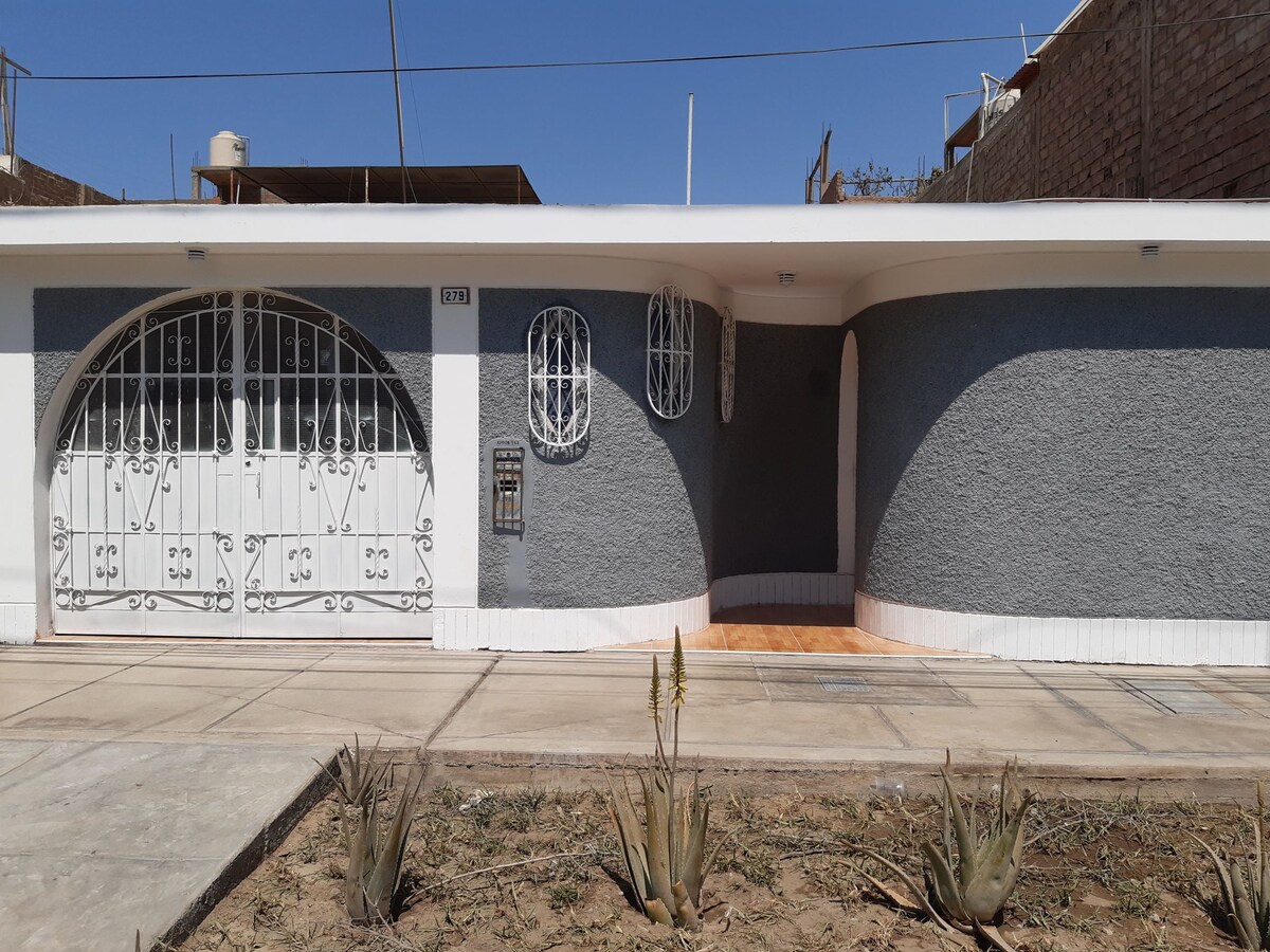 Disfruta de la tranquilidad de este alojamiento tranquilo y céntrico. Ubicados cerca a zonas turísticas , a 6 minutos de Huacachina , 7 minutos a la plaza de de armas , y 4 minutos a centros comerciales como el quinde . Nos ubicamos en residencial San Carlos zona muy tranquila y segura PROHIBIDO FIESTAS O REUNIONES . CONTAMOS CON CÁMARA DE SEGURIDAD FUERA DE LA CASA PARA HUÉSPEDES CON SOLICITEN COCHERA EN CALLE .