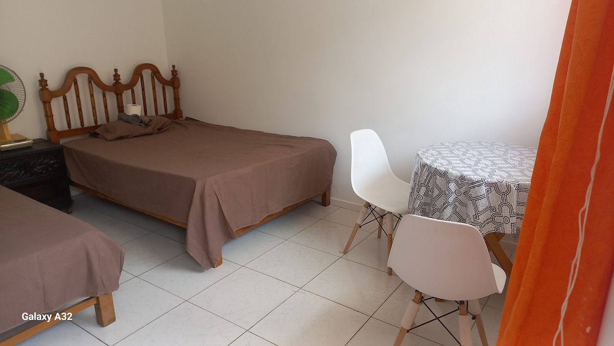 Departamento para 3 personas cerca de Huacachina, Ica, caminando te tomaras 15 minutos y auto, uber o tuk tuk 2 minutos, este apartamento es ideal para viajeros en grupos pequeños, esta ubicado en el tercer piso entrada independiente, cuanta con sala , pequeña cocina, y 01 baño, cuenta con lo necesario para que tu estadía como viajero sea agradable