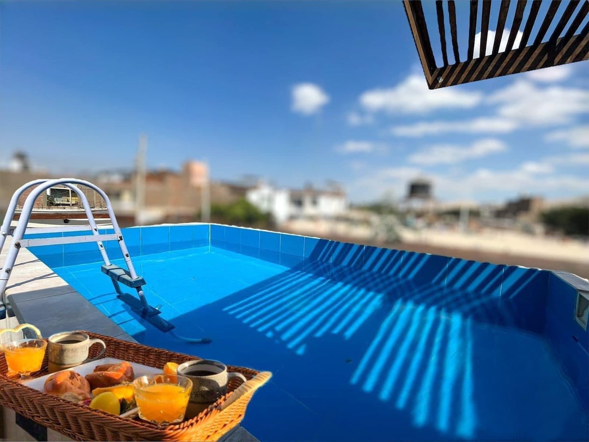 Escápate al corazón del Oasis en esta casa con Piscina Temperada y privada! recién construida! estamos a solo 3 minutos de la magica Huacachina y sus dunas. Es perfecta para familias, parejas o amigos que vengan por aventura, descanso o para descubrir los encantos del desierto. Relájate en Nuestra Piscina Temperada! con ambientes cómodos y acogedores, pensados para que te sientas en casa, cocina equipada. reservas 3 noches o mas accederás automáticamente a un 10% de Descuento en tu estadía!