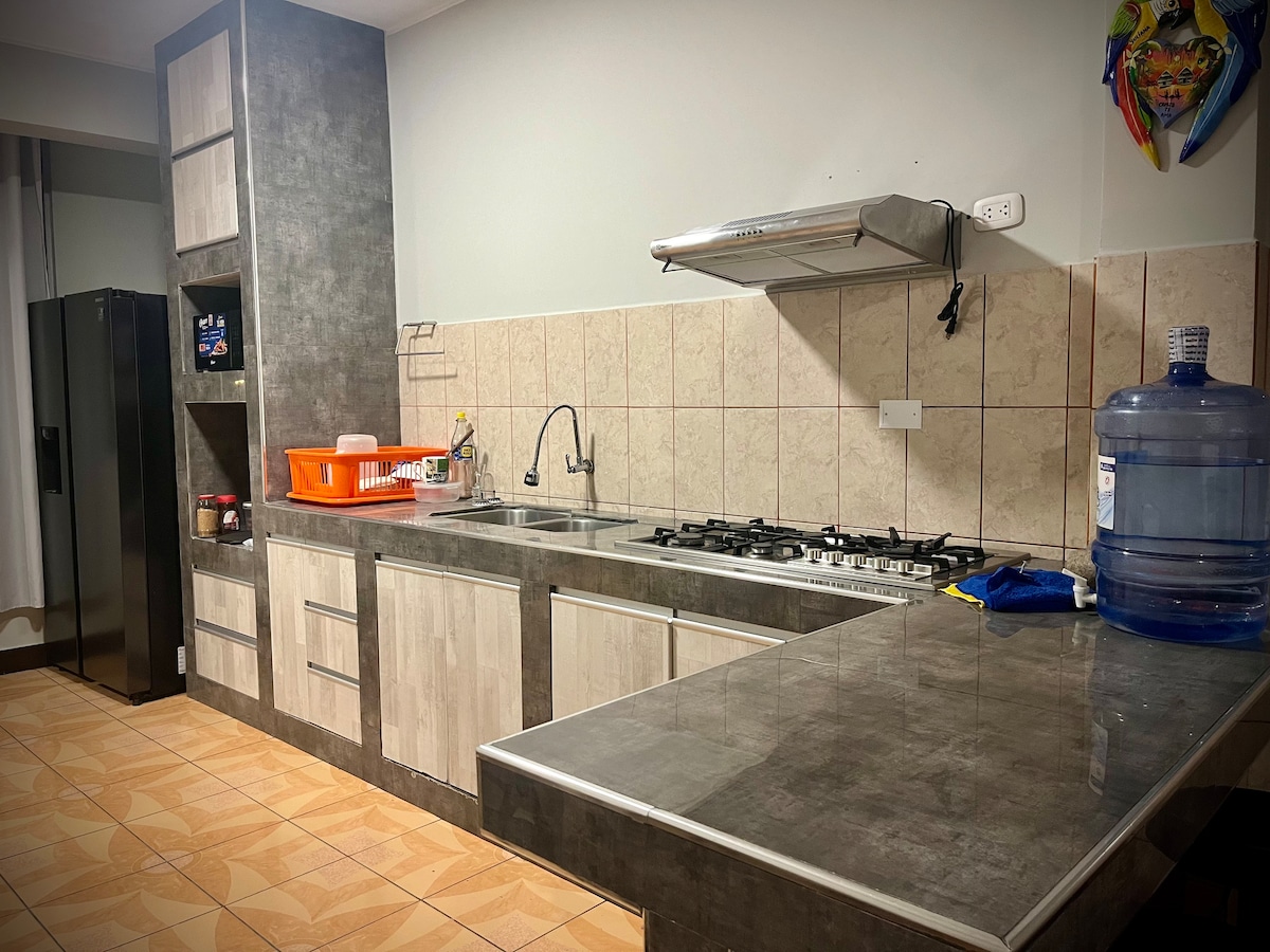 Departamento con entrada independiente y con todas las comodidades para tu familia o pareja . Tenemos muchas plantas para los amantes de la naturaleza. Ubicado en el Tercer Piso - Toda la terraza es privada para el huésped ! A 8 minutos de centros comerciales, plaza de armas, Huacachina y muchos centros turísticos de Ica.