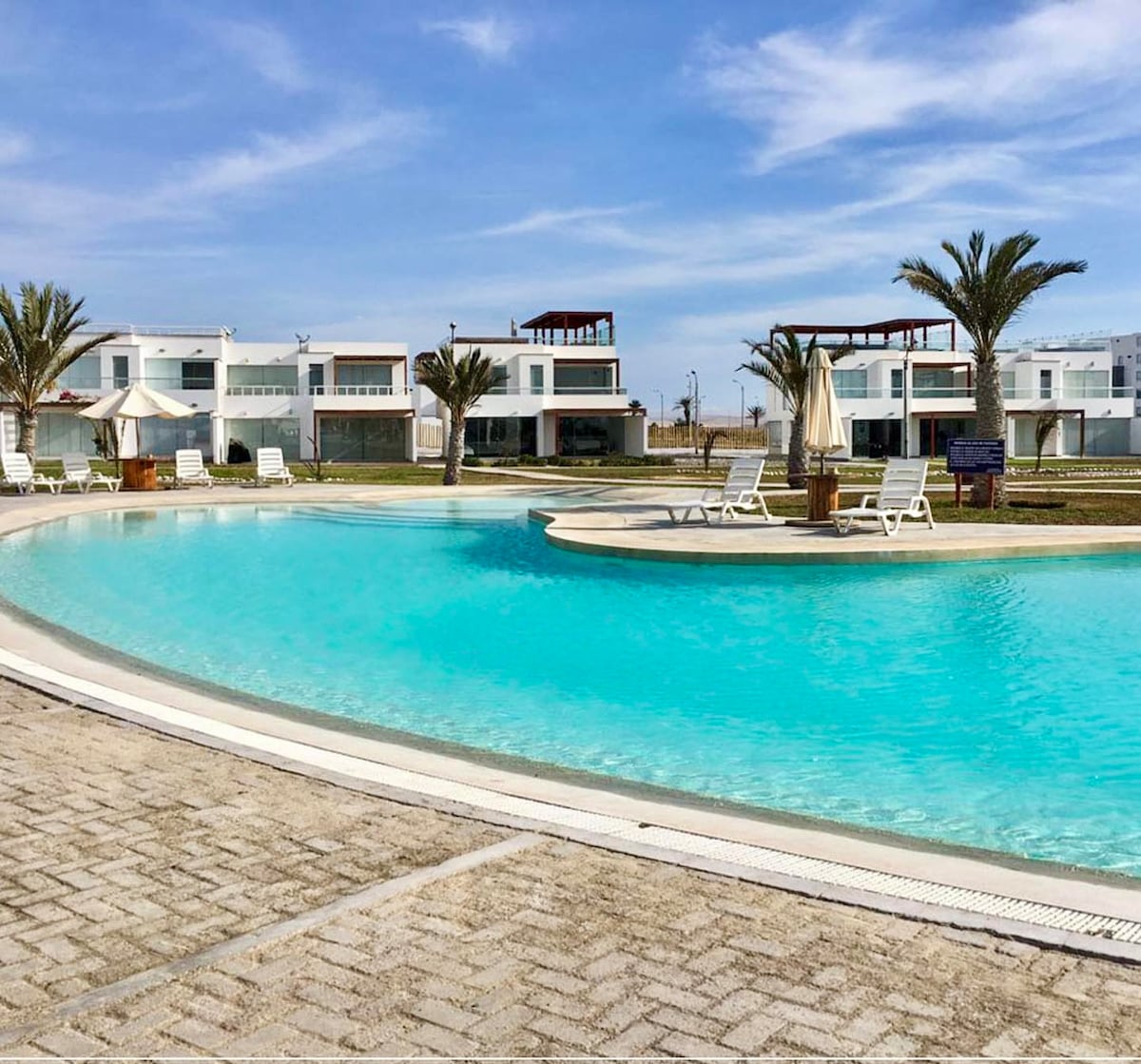 Modern and bright, luxury house, with beachfront pool, just steps away from the ocean. Housekeeper and private Chef included! Located in one of the most beautiful natural reserves in South America (Paracas) - a beach oasis in the middle of the desert, surrounded by a national parks and centuries of pre-Inca history, and 1 hour away from the Nazca lines! 3 spacious bedrooms with en-suite bathroom and closet, TV room, modern kitchen, laundry room, and a bedroom for service staff, a true gem!
