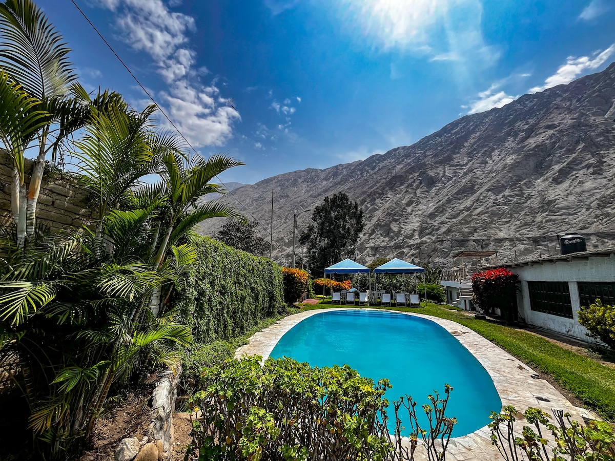 ¡BIENVENIDO A CASA SOLARIS! Tu Refugio Natural en Ica Disfruta de la tranquilidad de la naturaleza y respira aire puro, somos el lugar perfecto para relajarte y desconectar. Ubicados al ingreso de Ica, rodeados de viñedos y cerca de los mejores restaurantes típicos y atracciones turísticas: NORTE 25 min a los Dromedarios 45 min a Paracas SUR 15 min a la Plaza de Armas de Ica 17 minutos a Huacachina Ven a vivir una experiencia inolvidable en el eterno sol de Ica. ¡Te esperamos!