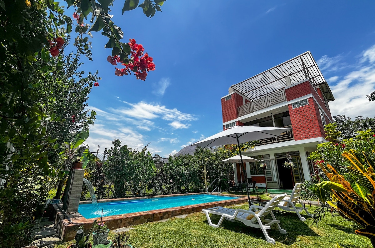 La casita de campo de 100 m2 se encuentra dentro de un condominio vigilado las 24 horas , pero el uso de la casa , el jardín súper grande y la piscina es exclusivo para los huéspedes , Es una casita rústica pero con todas las comodidades básicas :) No contamos con internet! Es importante saber hay unos 15 minutos max de trocha antes de llegar al condominio. La casa es petfriendly (sólo aceptamos una mascota)