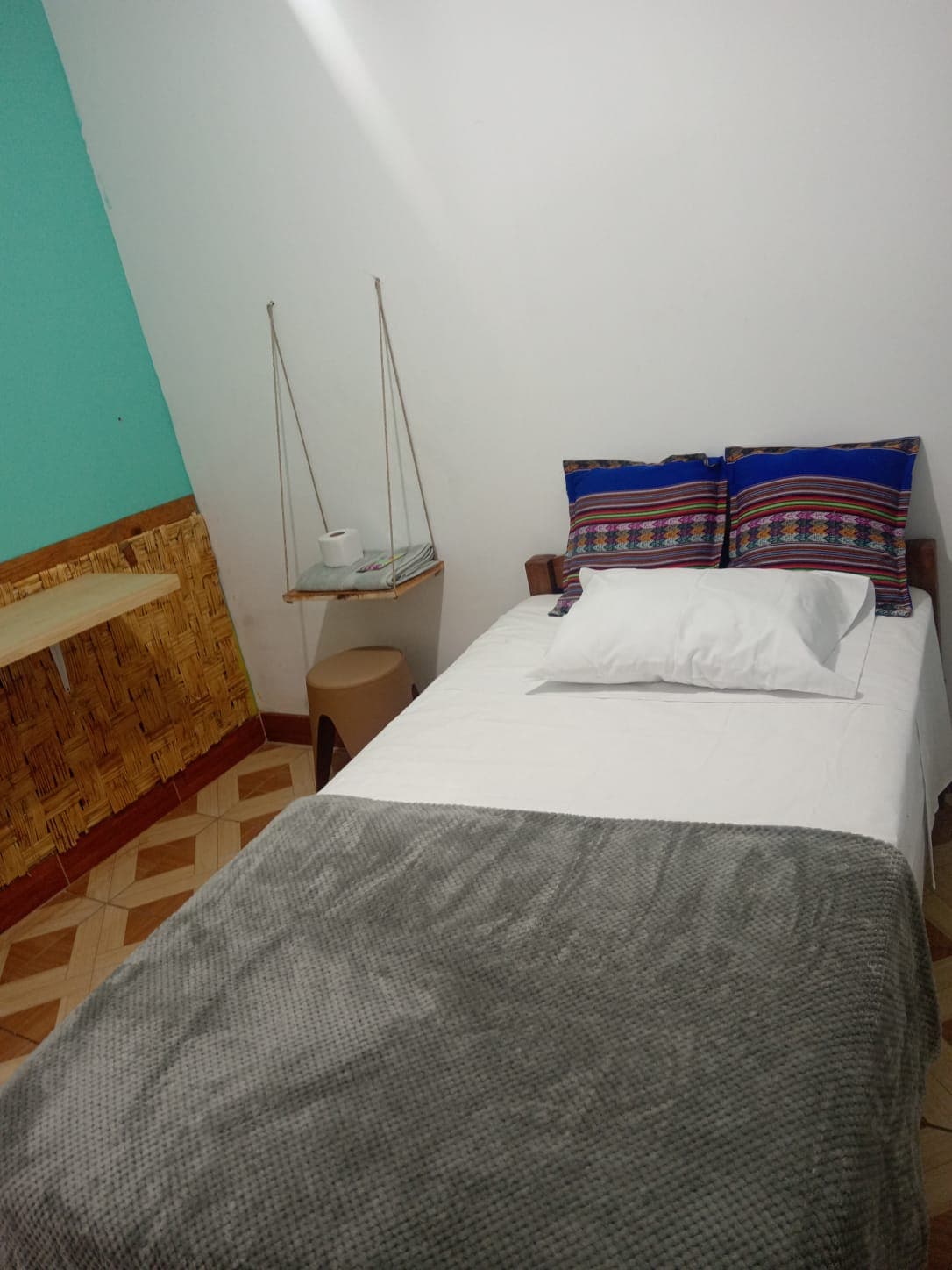 Cozy room with an independent entrance in Nazca, perfect for couples, small groups, and small families. Located on the first floor, this modern space features a double bed, a single bed, a full bathroom with hot water, a small living area, air conditioning, and Wifi. It also includes cable TV, access to shared kitchen & laundry facilities, and spacious parking. Situated in a safe area, just a 15-minute walk from the main square. An ideal choice for a comfortable and relaxing stay in the city.