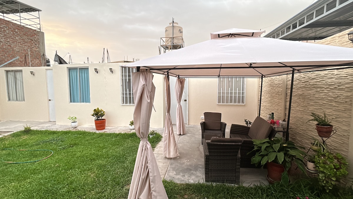 Relájate en esta escapada única y tranquila. Te alojarás en una casita de huéspedes en el campo muy cerca del mar, con el 62% de áreas libres, rodeadas de naturaleza, lagunas con aves residentes y migratorias , a unos metros (unos 4 min. Aprox caminando) encontrarás una hermosa playa con más de 2 km de extensión, vigilancia 24/7. El Club House tiene piscina, juegos para niños, canchas deportivas, 01 perro pequeños o mediano max 25 kilosNO RAZAS AGRESIVAS con su cartilla de vacunación al día
