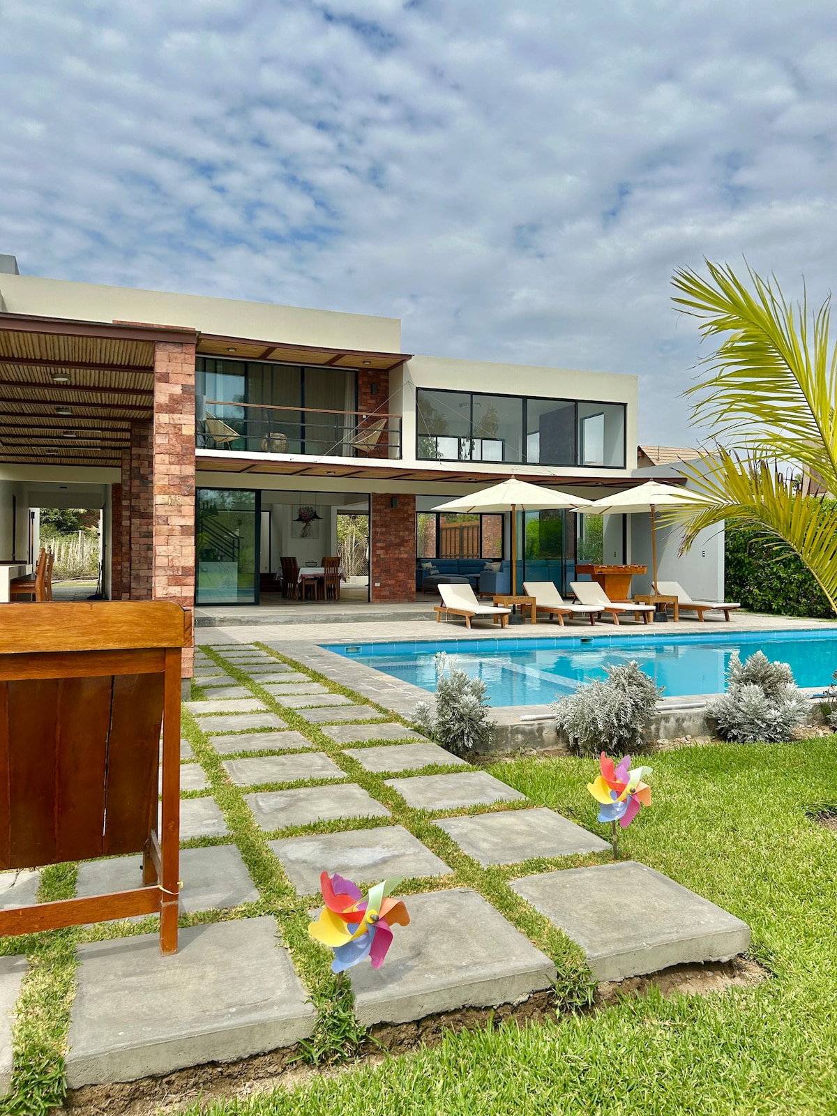 Amplia casa de campo de estreno, con vista a las lagunas con caída de agua y al desierto de Ica. Disfruta de una gran piscina de 9 x 5 m con zona para adultos y niños, jacuzzi, amplio jardín privado: área de fogatas, arena para niños, hamaca y juegos - Cocina 100% equipada - Servicio hotelero y limpieza profesional- Internet rápido y estable -Gran parrilla y amplia terraza - Asistencia 24/7. Cuidamos cada detalle para que vivas una experiencia inolvidable en naturaleza, confort y tranquilidad