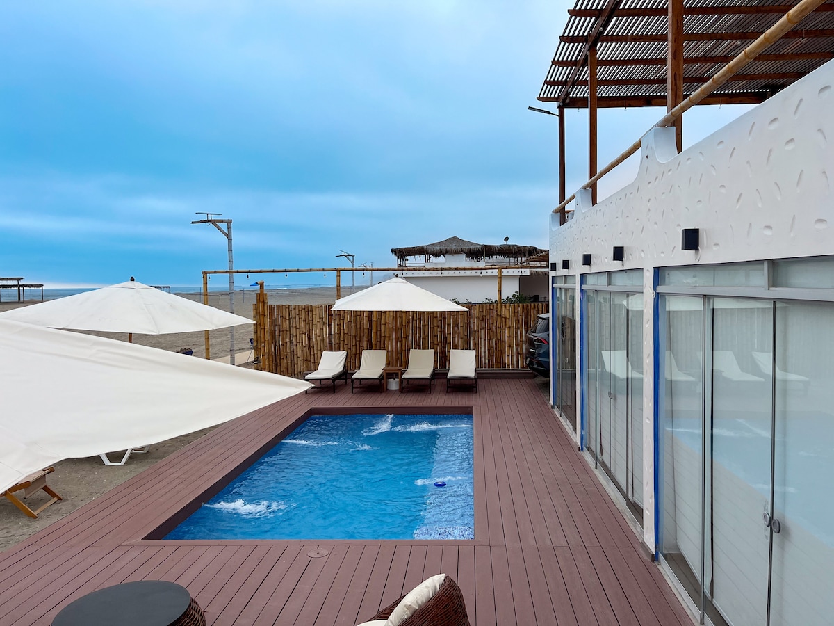 Modern and bright, luxury house, with beachfront pool, just steps away from the ocean. Housekeeper and private Chef included! Located in one of the most beautiful natural reserves in South America (Paracas) - a beach oasis in the middle of the desert, surrounded by a national parks and centuries of pre-Inca history, and 1 hour away from the Nazca lines! 3 spacious bedrooms with en-suite bathroom and closet, TV room, modern kitchen, laundry room, and a bedroom for service staff, a true gem!