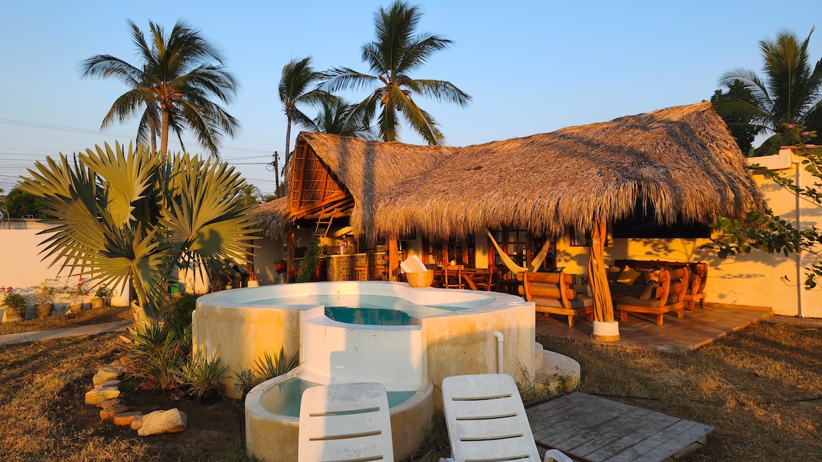 Puede ser Perfecto para un retiro y también para disfrutar con amigos y familia. Es como un pequeño mundo en la playa, aislado de la ciudad. La banda sonora de esta casa son las olas. Podrías estar sentado en la amaca todo el día contemplando la playa. La mejor inversión es la vista. Paz, tranquilidad, naturaleza. Lugar Perfecto para pescar y sorfear . Los mejores atardeceres son aquí. Es un lugar simple que te da todo. Contamos con personal para cocina típica del lugar.
