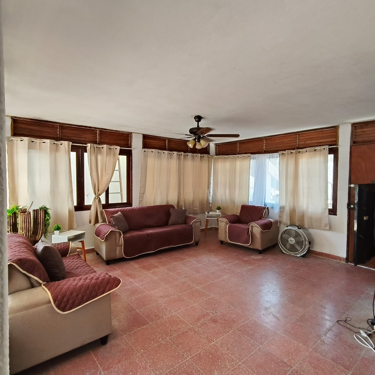 Hola qué tal la casa Audi (Privacidad) tenemos Estacionamiento para moto, carro, muy seguro, un resividor afuera (mesa y sillas), al entrar puedes ver qué no ahí escalones, una sala grande un comedor hermoso, la cocina bien equipada y con todo lo básico para que cocines tranquilamente, dos recamaras grandes con ventilador, dos baños completos con ( toallas, jabón, papel higiénico) ideal para tu higiene personal , cuenta con una hermosa terraza donde puedes descansar.