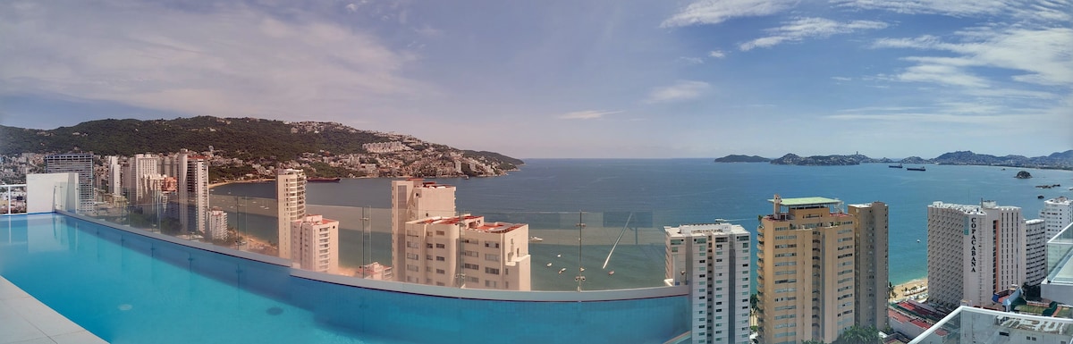 Este alojamiento ha obtenido las más altas calificaciones por su calidad y limpieza. Departamento de lujo dentro de la Isla Residences, uno de los fraccionamientos más seguros e imponentes de Acapulco. Muebles daneses con equipamiento y servicio superior. Totalmente nuevo. Equipado con cocina italiana, dos pantallas 4K y una vista increíble.