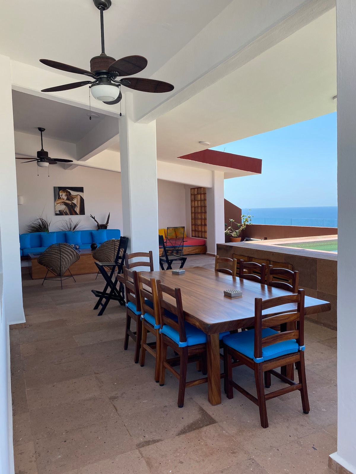 Lugares de interés: increíbles vistas, la playa, vida nocturna, restaurantes y comida y actividades en familia. Te va a encantar mi lugar debido a las vistas, la cocina, los techos altos, la comodidad de la cama y el espacio acogedor. Mi alojamiento es bueno para parejas, familias (con hijos), grupos grandes y mascotas. It also includes a chef and a waitress from 9 am to 7 pm.