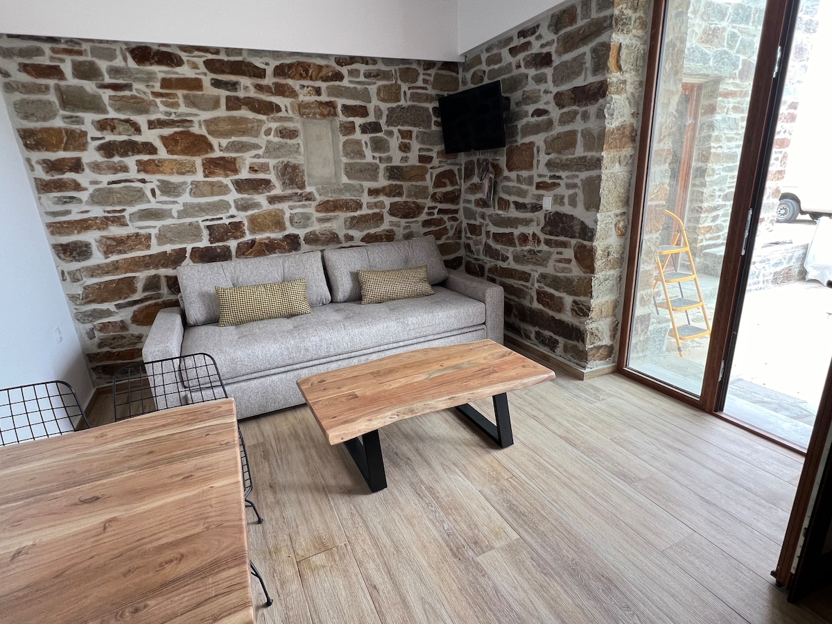 Newly renovated studio apartment located 50m from the sea with beautiful views and in a quiet and peaceful location, but still close to the popular beaches and resort town of Armenistis. During calmer days enjoy your own quiet swimming area only two minutes walking distance from the house. All other days enjoy the organised beach only two kilometres away. We recommend you rent a motor vehicle to cover the vast distances between the sights.