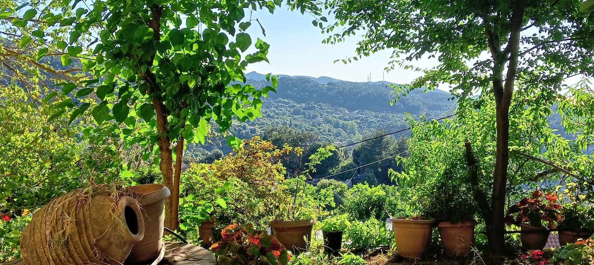 A beautifully renovated 100 year old stone house nestled amongst plane, eucalyptus and olive trees with a unique outdoor stone seating area surrounding an ancient olive press. Wake up to beautiful views of the sea and the mountains in this peaceful setting. An ideal place to decompress and get inspired by the sounds, scents and vibes of nature. Our 6000m2 property is full of olive and fruit trees, organic vegetable gardens, and authentic Ikarian herbs, all for your use.