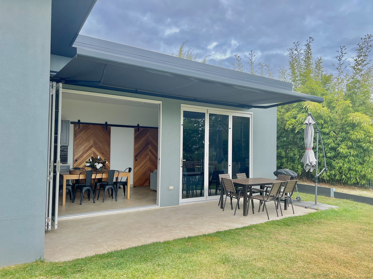 Between the lagoon and the ocean…. Clever architectural design with full size well equipped kitchen and beautiful private sunny balcony. This is a one bedroom freestanding fully self contained private elevated dwelling amongst the giant bamboo, Bangalow palms and bromeliads with lake glimpses and ocean breezes. If you're looking for somewhere out of the ordinary, in an outstanding location just minutes walk to the beach, and a little more special than the rest, you will not be disappointed.