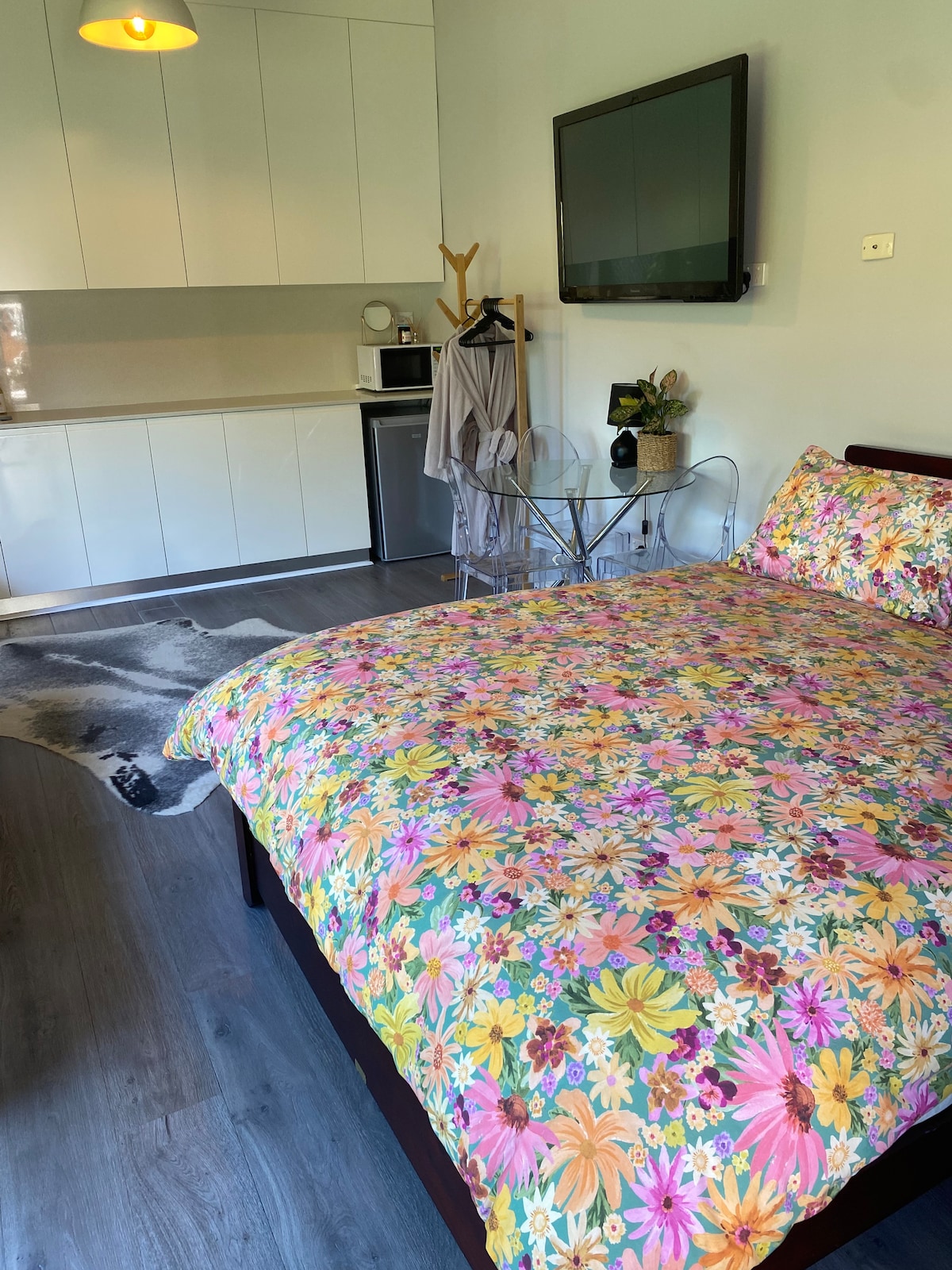 Sit back on the sun-drenched veranda of this cosy period house and take in the sweeping views across Green Park. All rooms are spacious and come with all the essentials to make you feel at home. As hosts with a young family, we occupy part of the property and share a common wall with the guesthouse. However, the AirBnB is private, has a separate entrance and shares no common areas. This self-contained guesthouse is part of a gracious federation family home on a corner block with its own private entrance. It has one bedroom with a built in wardrobe and desk. The Living area is a combined living/dining and kitchenette leading to a large outside verandah/deck. The space is flexible and perfect for business travellers, young families and couples looking to enjoy the best parts of Sydney. We have an air mattress and crib, which we’ll include or remove based on your sleeping requirements. You’ll feel just like you’re at home away from home! Guests have a separate private access with no shared areas and direct access to Green Park from the outside veranda accessible via a side entrance. This property supports keyless access powered by August Home. Should you wish, there is no need to interact with the residents of the house, the apartment is your space and is totally private. Across the road from the house is Greens Park, which boasts a playground, public tennis courts, and basketball hoops. Cammeray golf course is practically on the doorstep as well, and there's a huge array of cafes, restaurants, and bakeries nearby. Cammeray is an excellent location with immediate access in all directions by car. There is plenty of all day parking on the street just outside our place. Public transport is a breeze into the City, North Sydney and Mosman. It's even an easy walk to & from North Sydney, Neutral Bay & Crows Nest for work or play. The kitchenette comes equipped with a bar fridge, microwave / oven, 2x induction hot plates, toaster, jug and necessities.