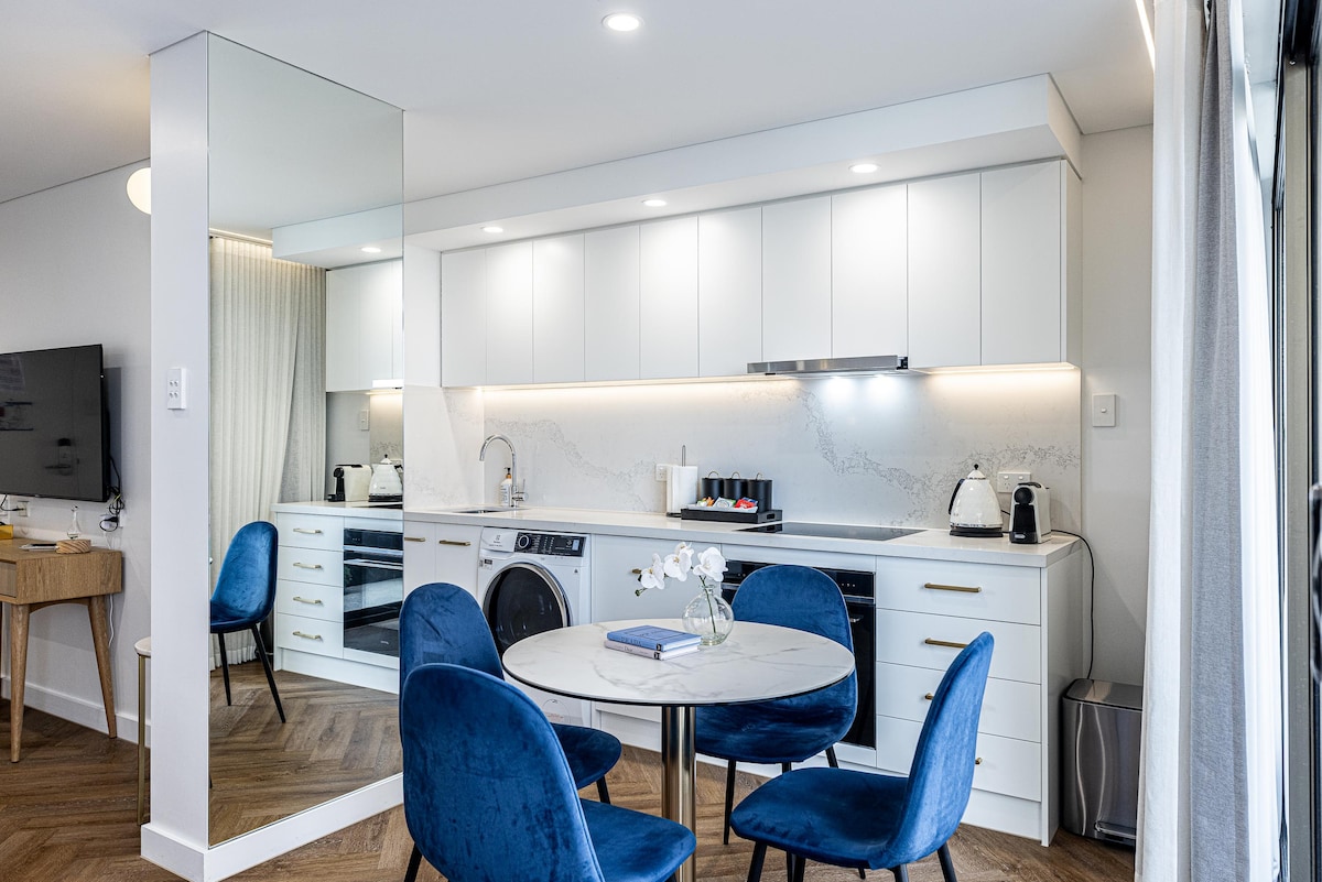 Unwind in our stylish CBD oasis - a newly renovated modern studio apartment in the heart of Sydney. This sunny inner-city sanctuary features luxury amenities including a queen bed with quality linens, chic bathroom with complimentary toiletries, washing machine, full kitchen, Nespresso machine, tea, free Wi-Fi, and Netflix. Enjoy amazing Oxford Street views while being in walking distance to the Opera House, Art Gallery, Sydney Tower, and Royal Botanic Gardens. Perfect for your Sydney stay!