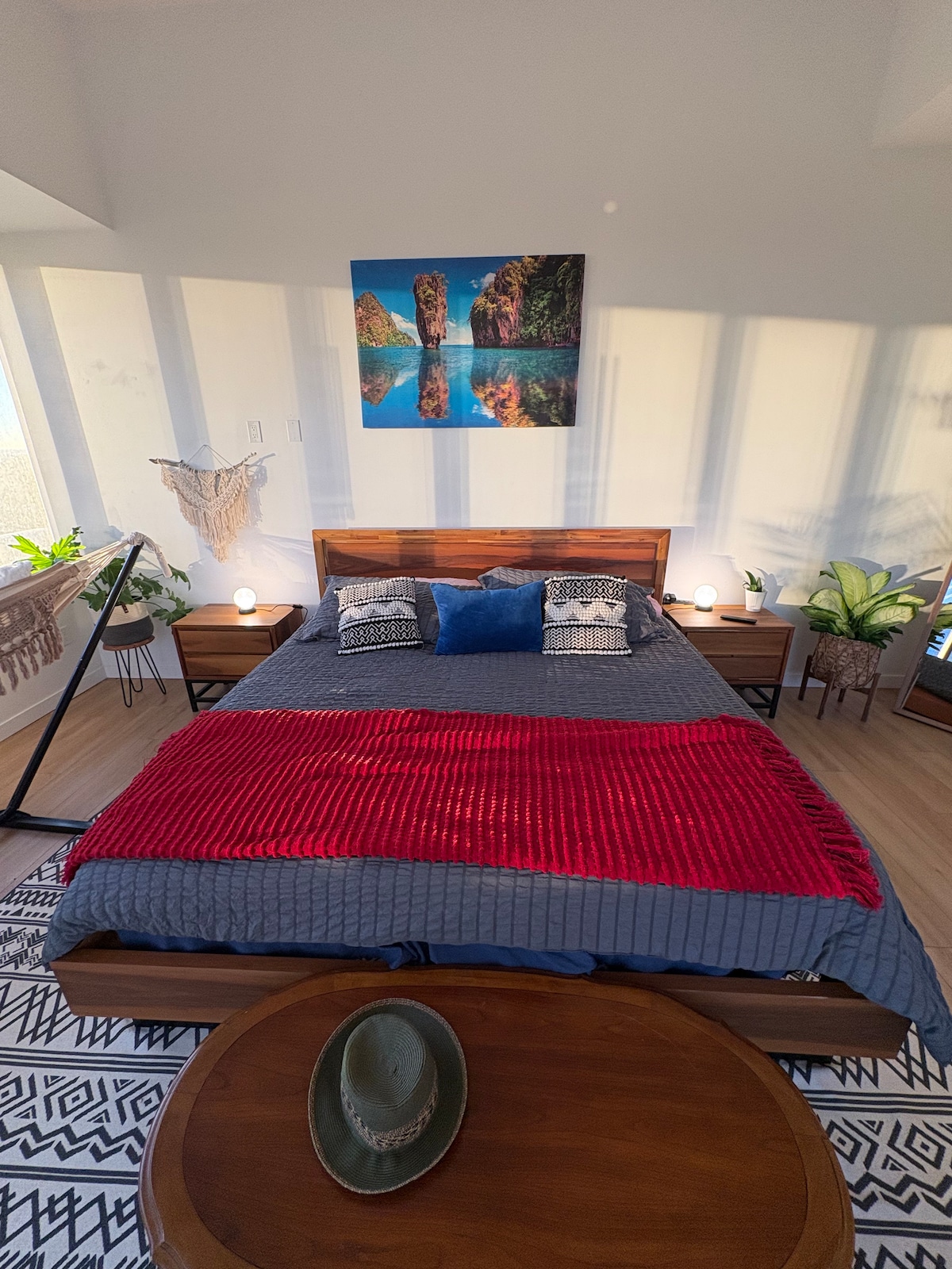 A fully equipped kitchen and cozy furnishings are perfect for longer stays. Use the pool and gym to maintain your excercise routine while you're travelling. Enjoy easy access to everything from this perfectly located home base. Take in stunning views of the city skyline from the balcony. You are just steps away from some of the city's best restaurants, cafes, and entertainment venues, walking distance to Rogers Place, MacEwan University and a quick transit to the University of Alberta.